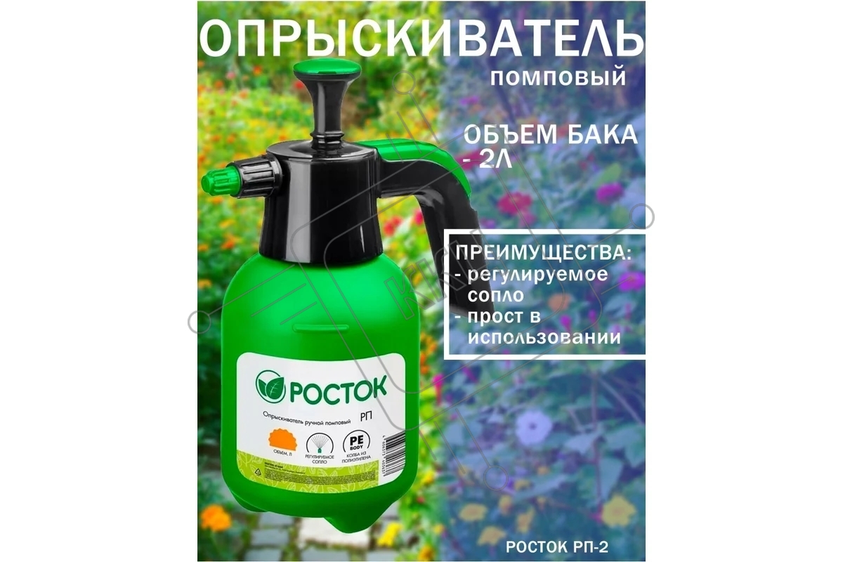 Опрыскиватель РОСТОК РП-2 2 л, ручной, помповый, колба из полиэтилена