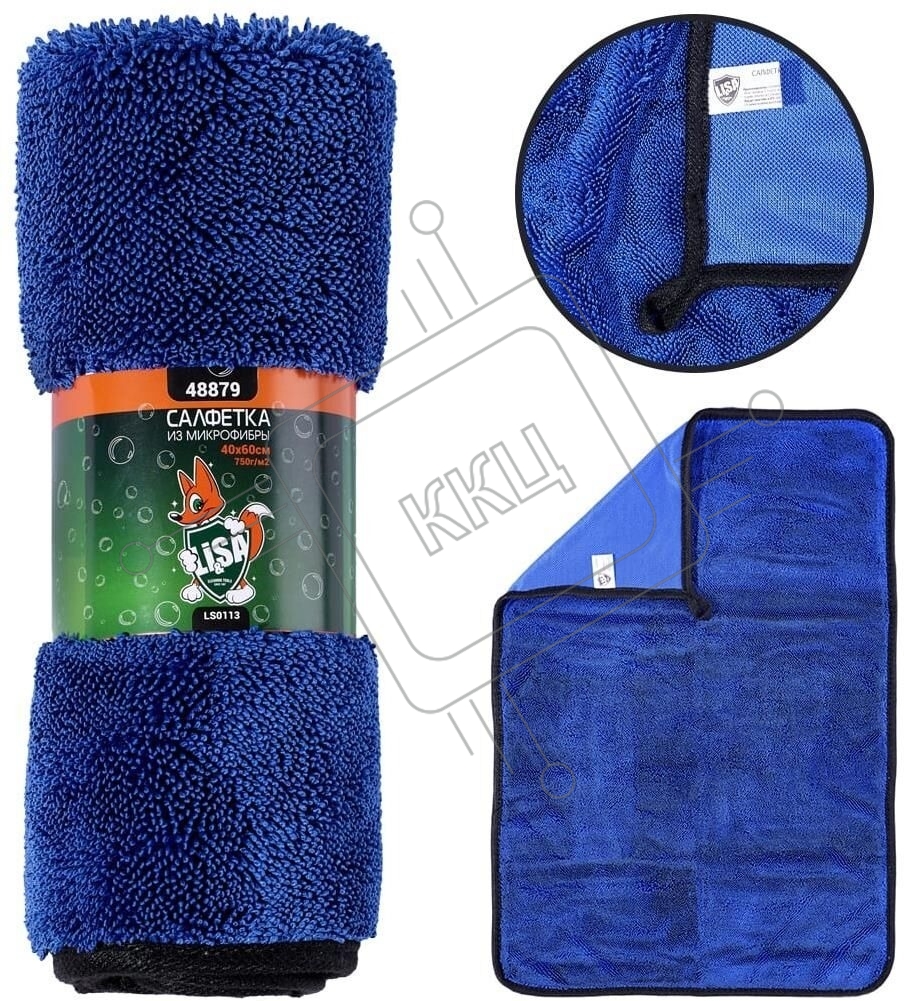 Салфетка LI-SA LS0113 из суперплотной микрофибры для чистки, сушки и полировки кузова 40х60см, высокий ворс, плотность 750г/м2 48879