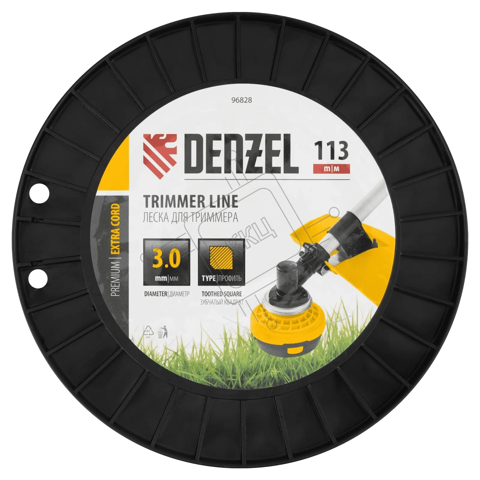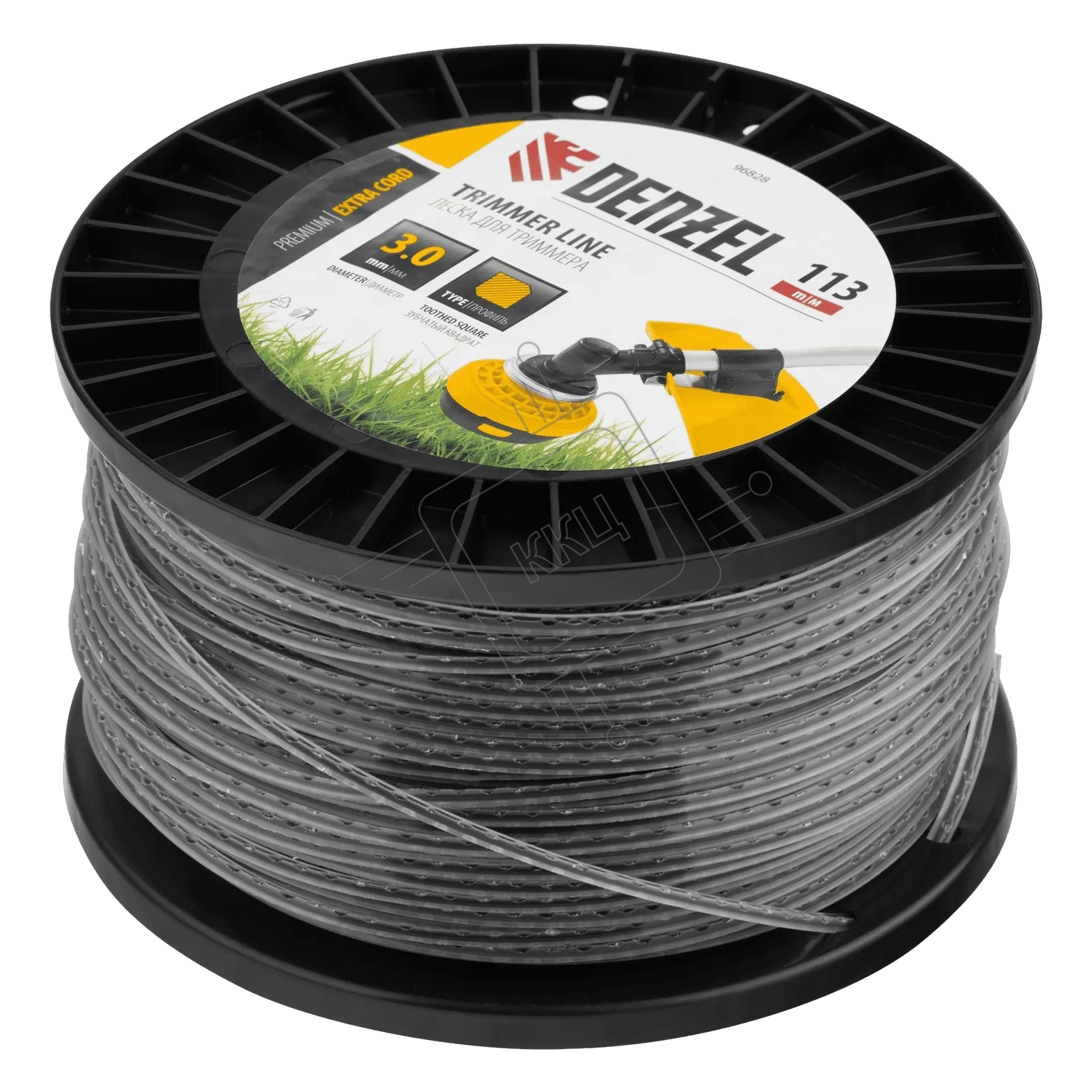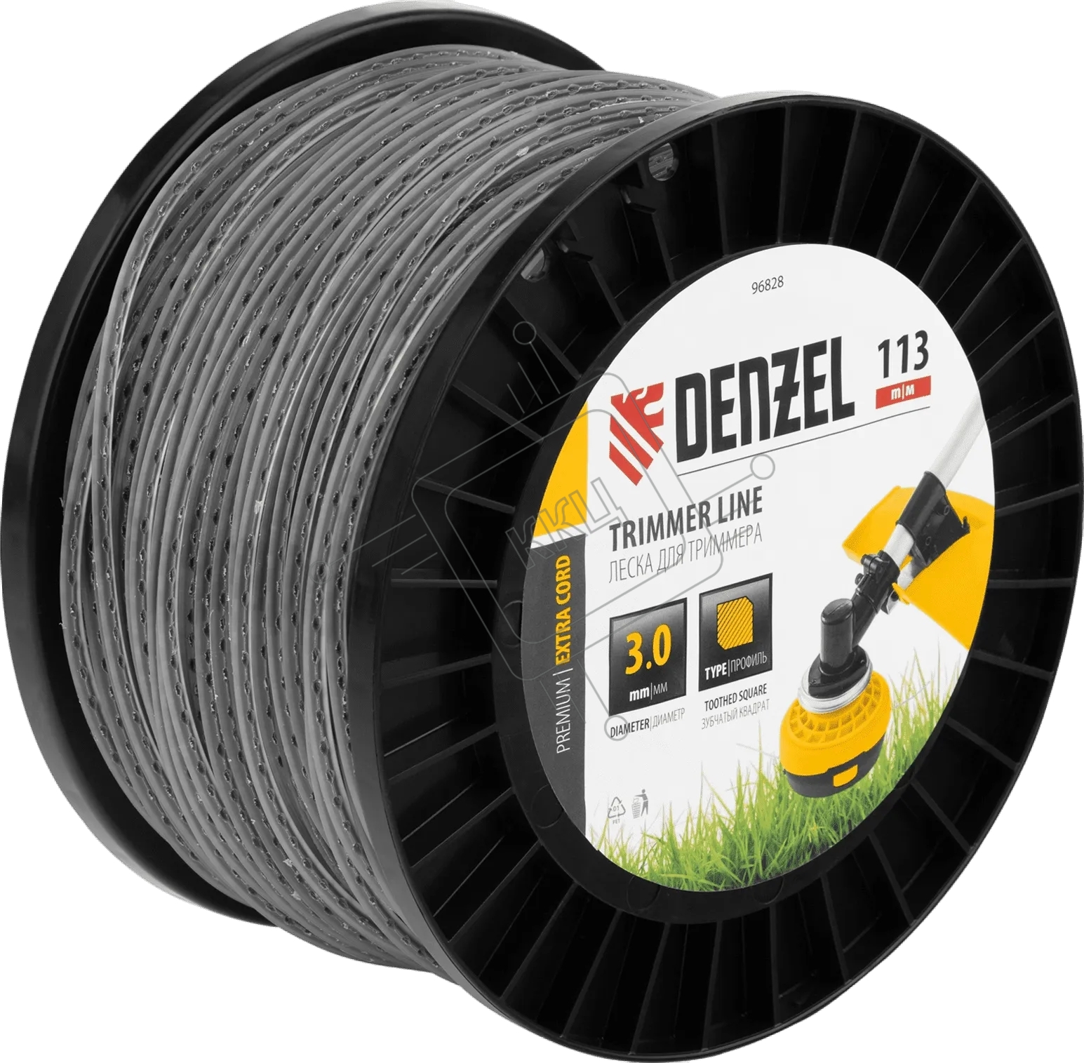 Леска для триммера Denzel двухкомпонентная, зубчатый квадрат, 3,0 мм х 113 м, на DIN кат. EXTRA CORD