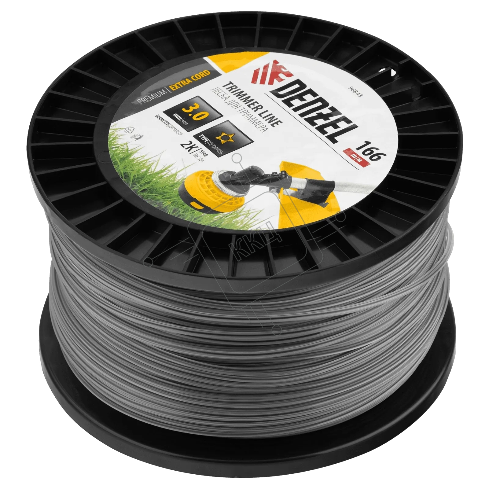 Леска для триммера Denzel двухкомпонентная звезда, 3,0 мм х 166 м, на DIN катушке EXTRA CORD