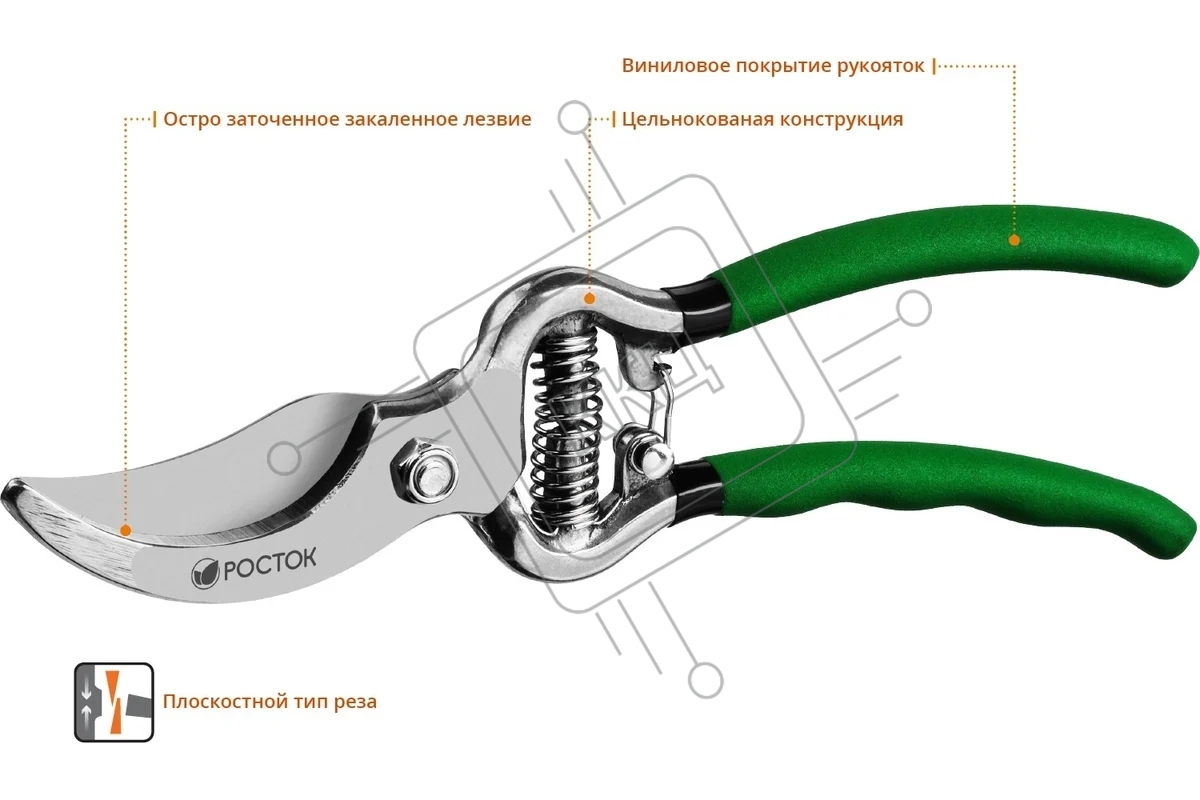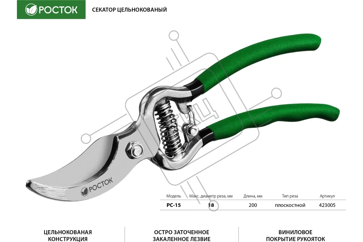 Секатор цельнокованый РОСТОК PC-15 плоскостной, 200 мм