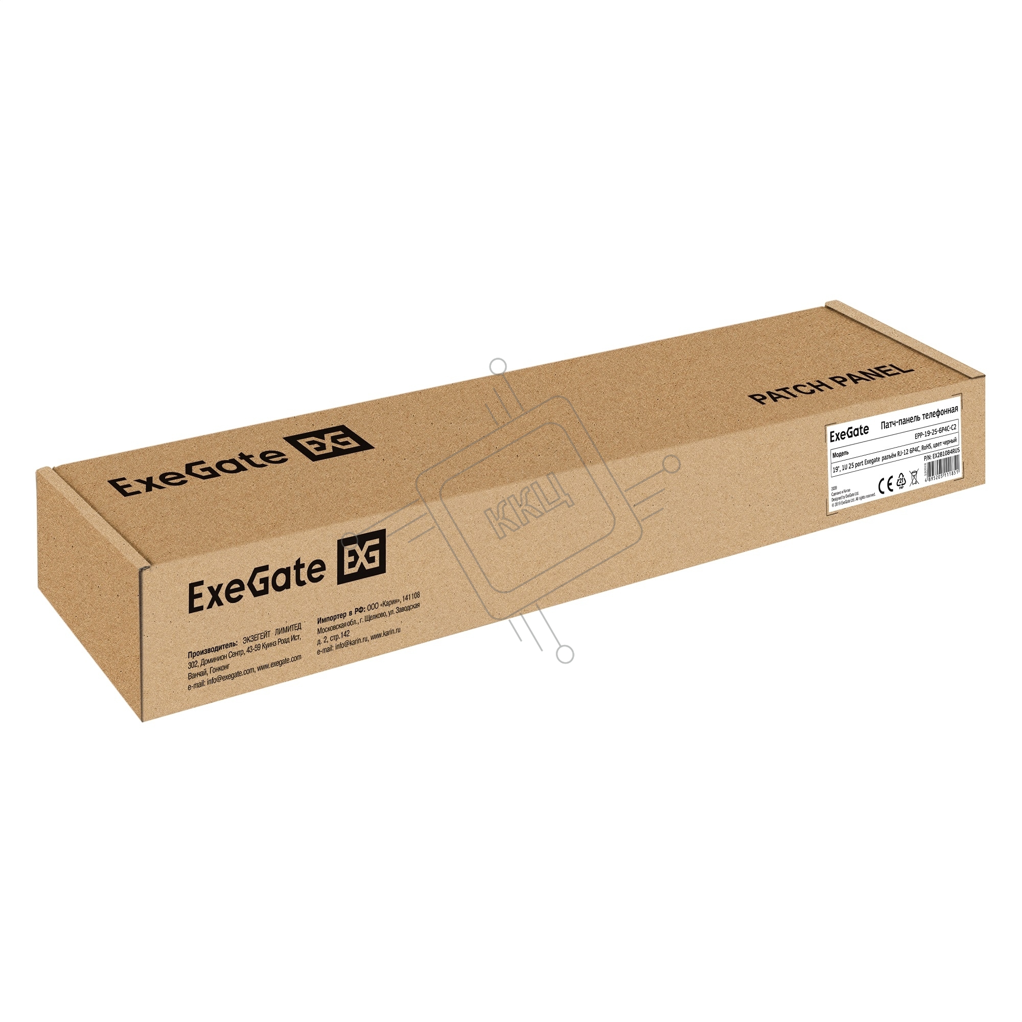 Патч-панель телефонная 19", 1U 25 port ExeGate разъем RJ-12 6P4C, RoHS, черный
