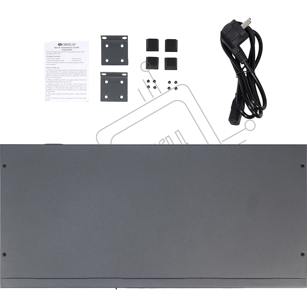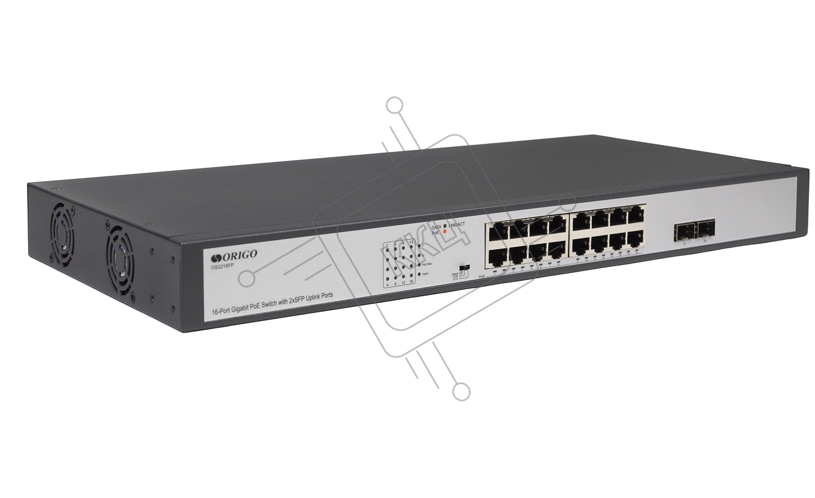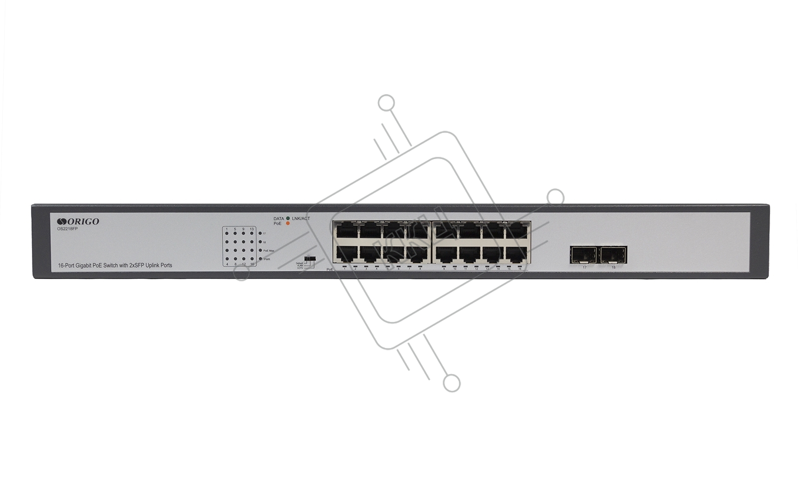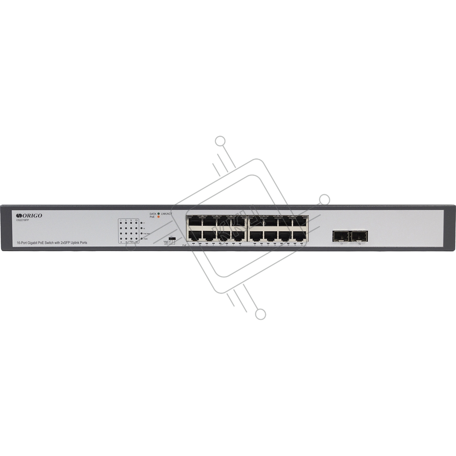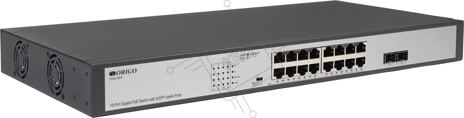 Коммутатор Unmanaged Switch 16x1000Base-T PoE, 2x1000Base-X SFP, PoE Budget 200W, Long-range PoE up to 250m, 19" w/brackets