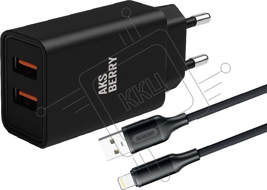 Сетевое зарядное устройство AKSBERRY (6900209210016) T38 2 USB 2.4A + кабель Lightning, черный