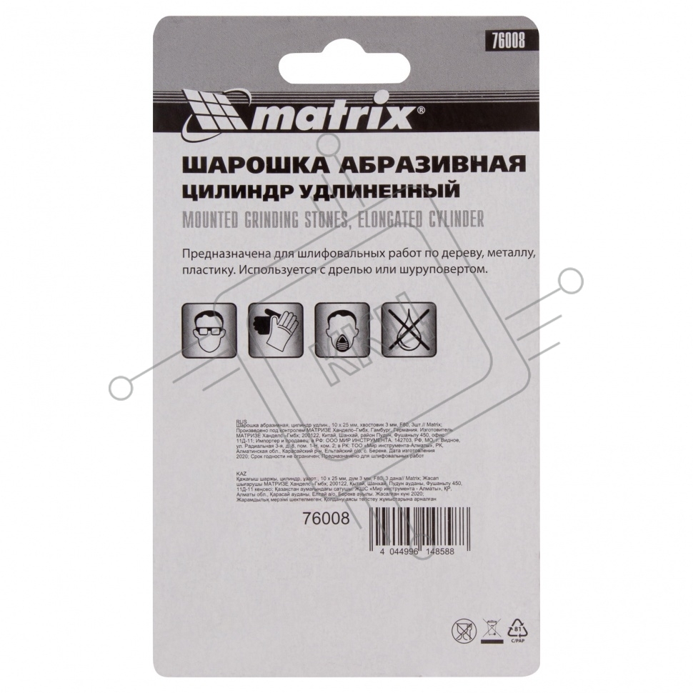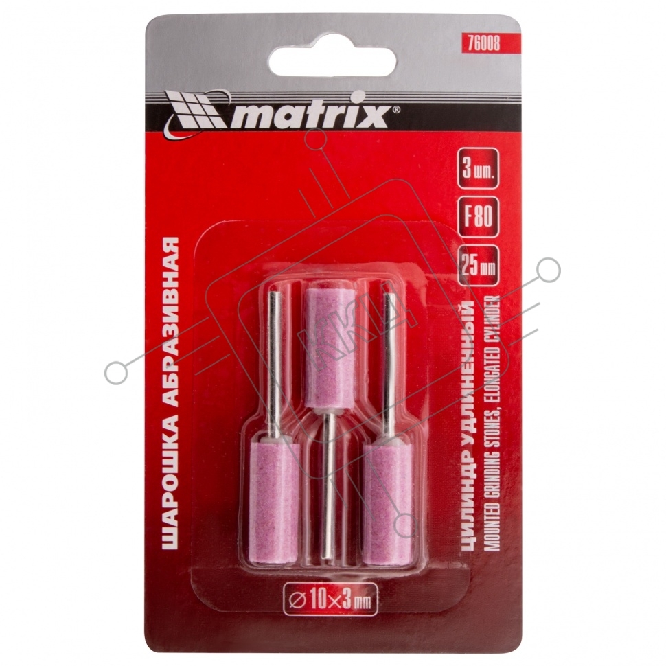 Шарошка абразивная, цилиндр удлин., 10 x 25 мм, хвостовик 3 мм, F80, 3шт. Matrix