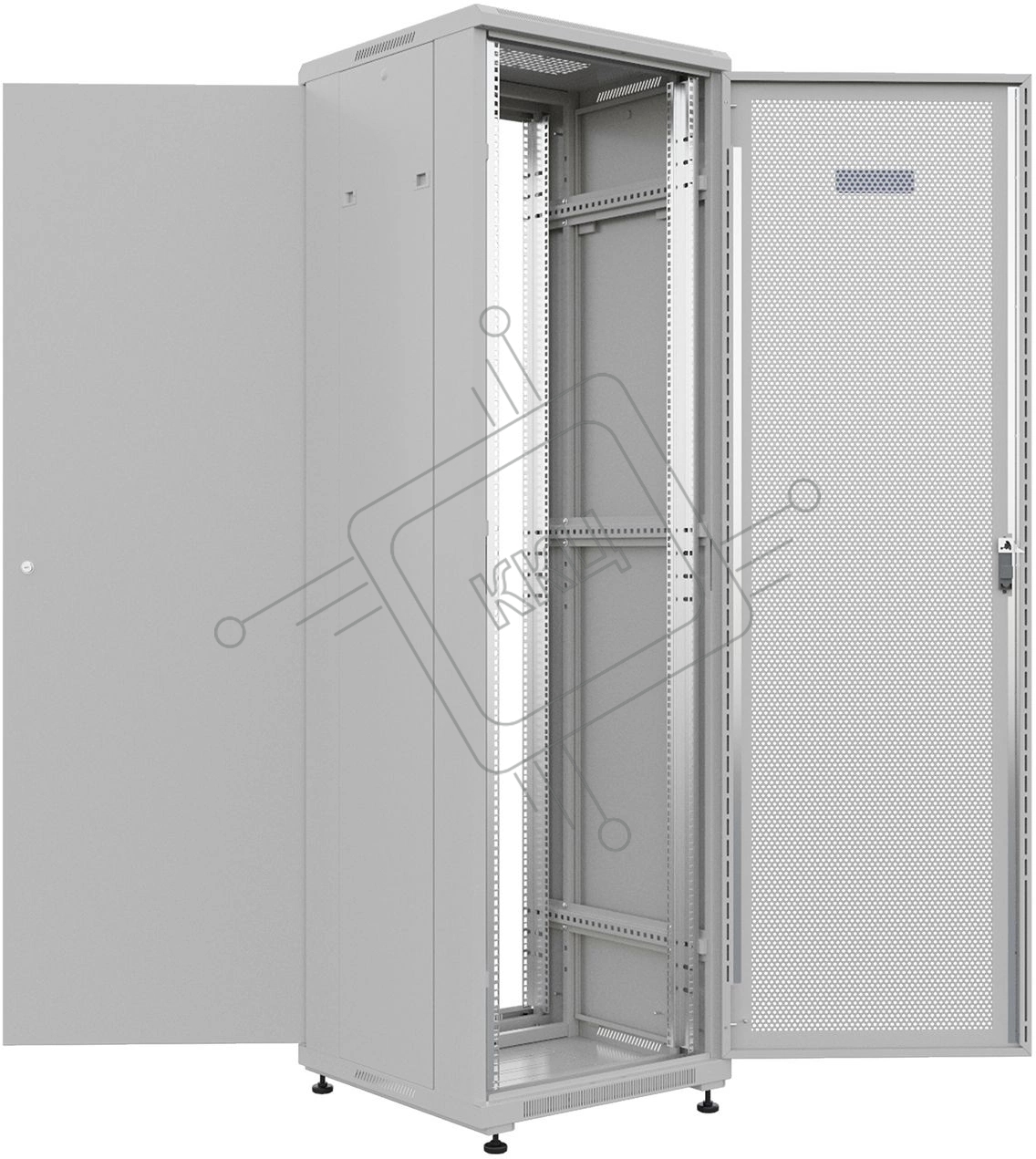 Шкаф коммутационный NTSS Премиум (NTSS-R42U6060PD) напольный 42U 600x600мм пер.дв.перфор. металл 900кг серый 510мм 86кг IP20 металл