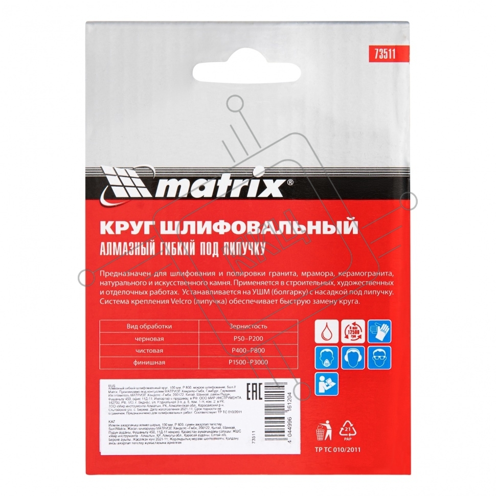 Алмазный гибкий шлифовальный круг Matrix, 100 мм, P 800, мокрое шлифование, 5шт.