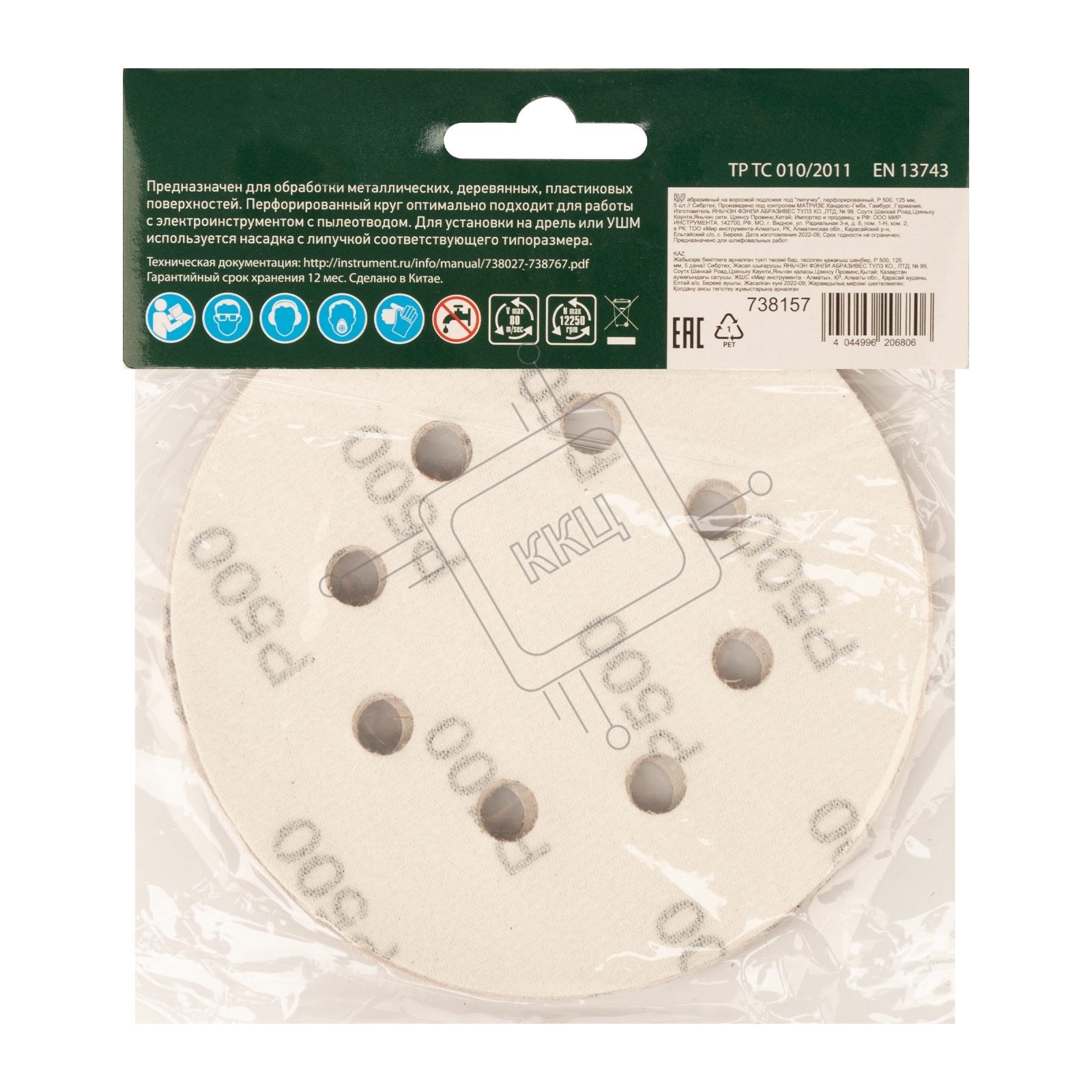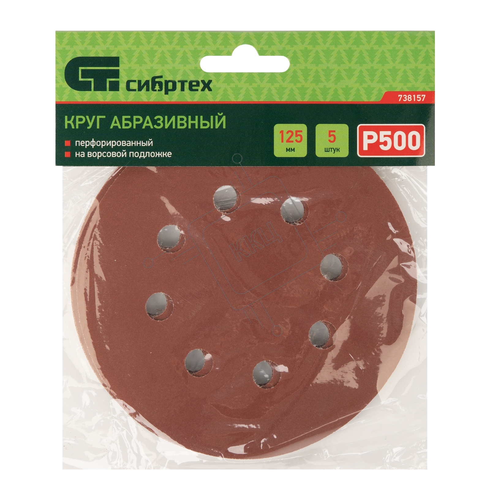 Круг абразивный на ворсовой подложке под "липучку", перфорированный, P 500, 125 мм, 5 шт. Сибртех