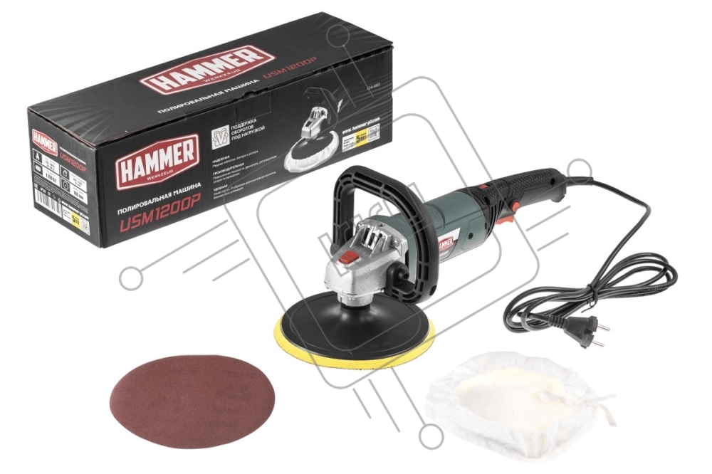 Машина шлифовальная угловая Hammer Flex USM1200P 1200Вт 600-3500об/мин тарелка 180мм, полировальная