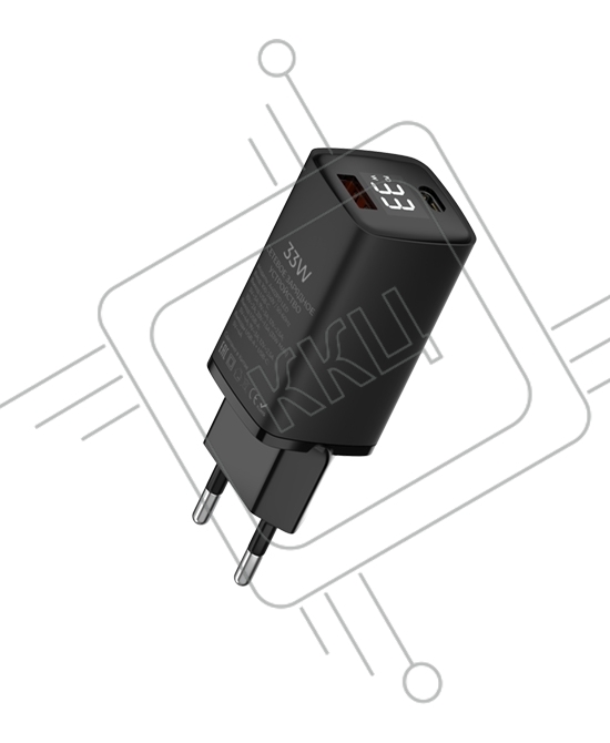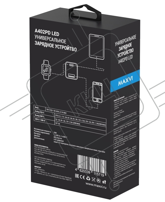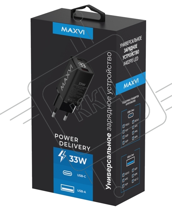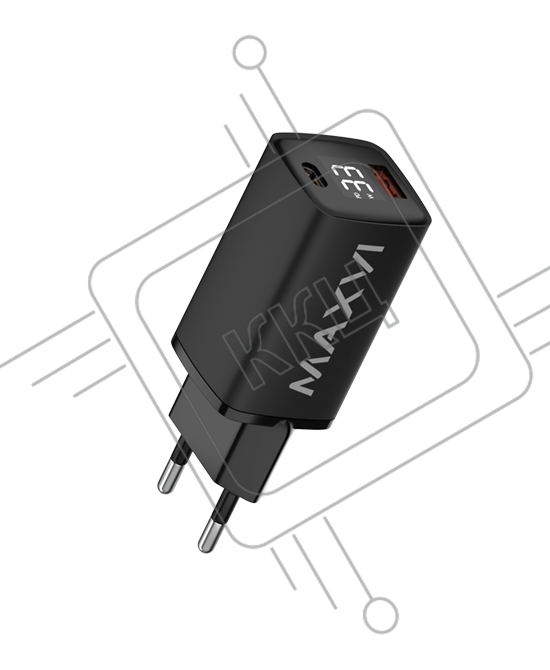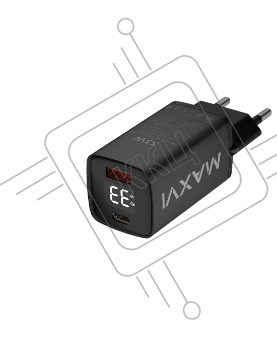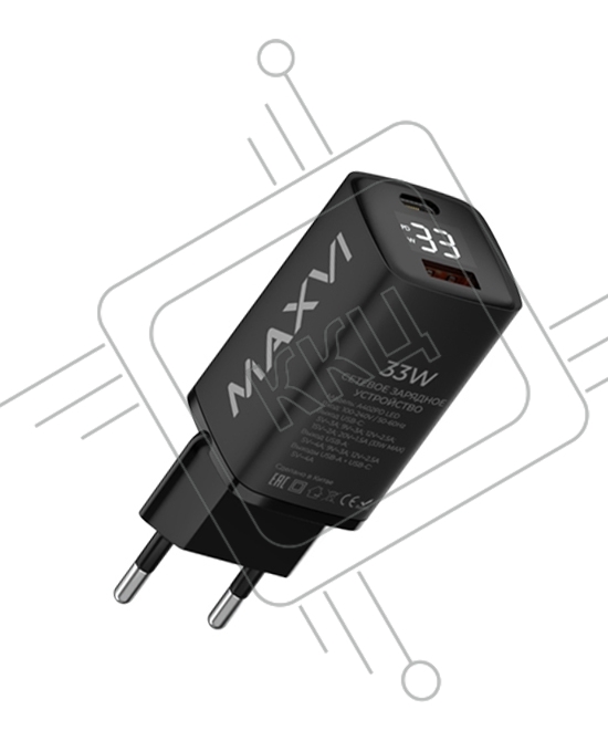Сетевое зарядное устройство Maxvi A402PD LED 33W, 1xUSB-A, 1xUSB-C, черный