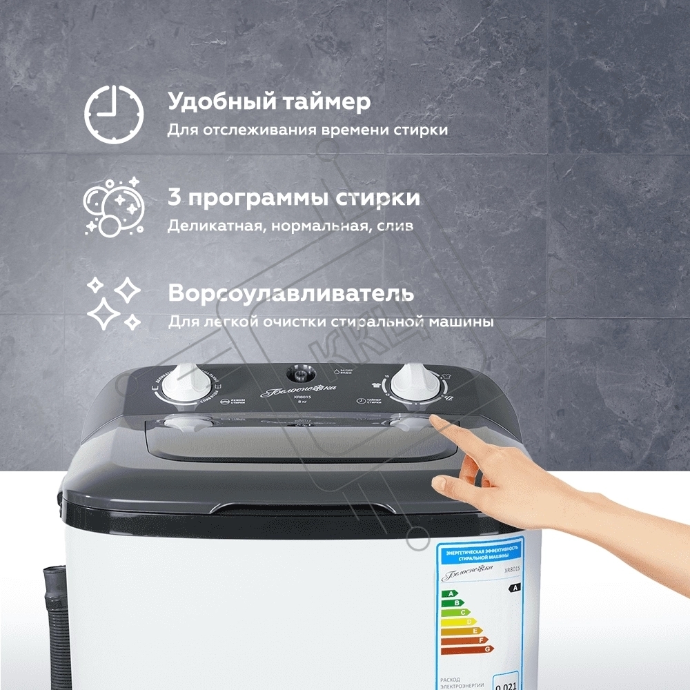 Стиральная машина Белоснежка XR801S белый, загрузка вертикальная 8 кг, Без отжима, класс: А