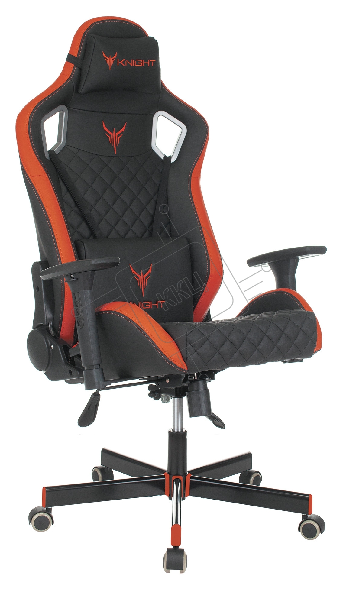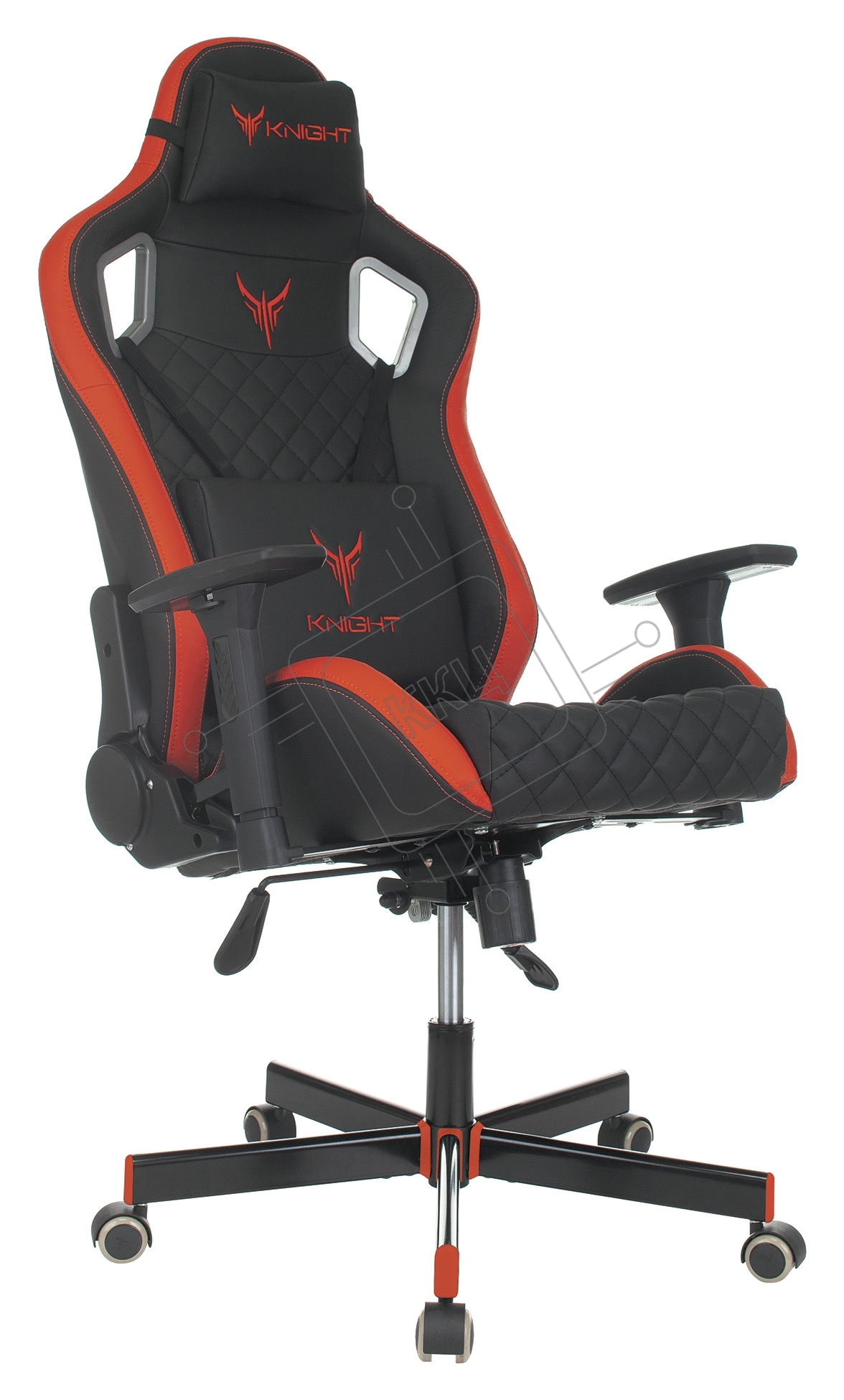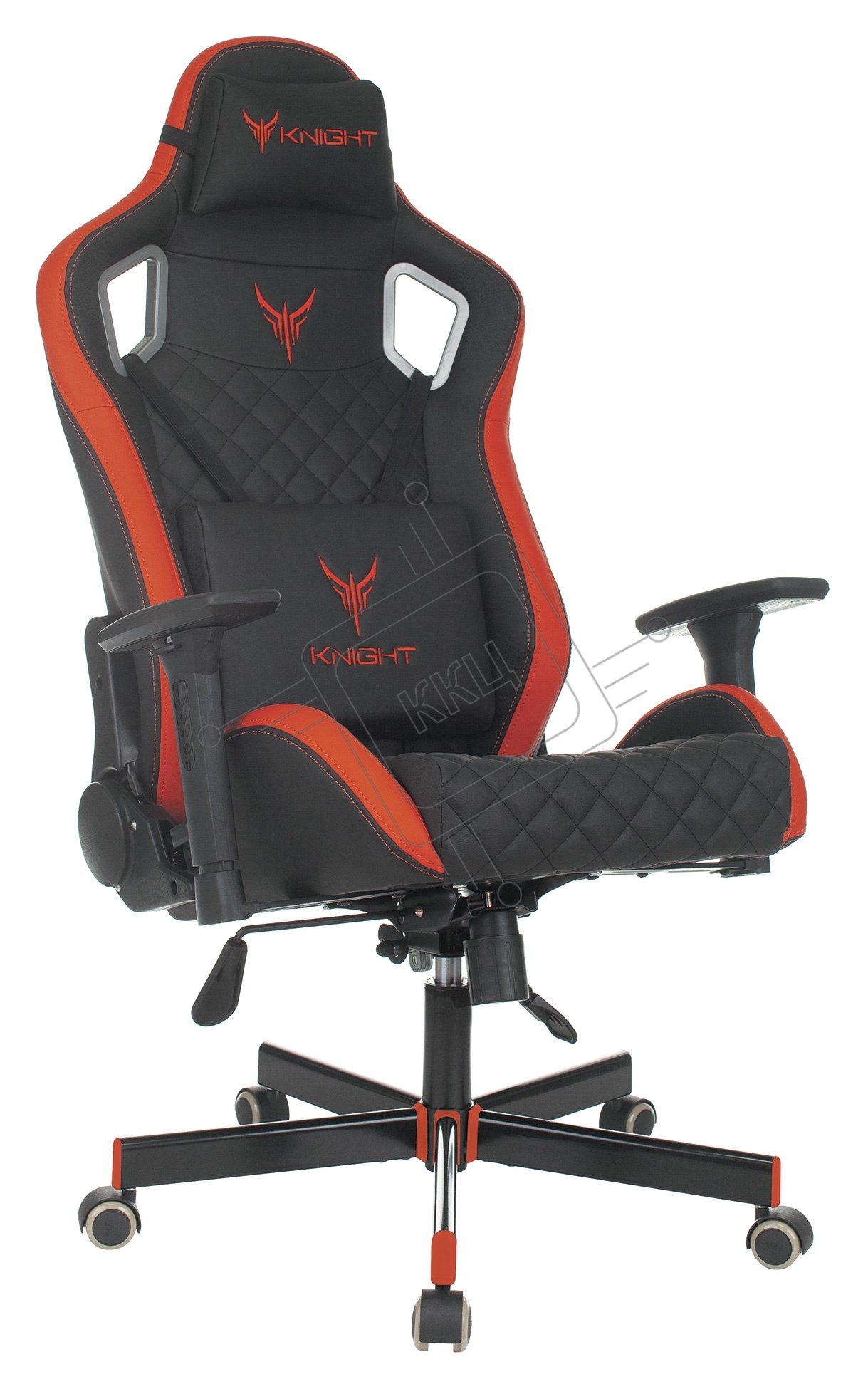 Кресло игровое Knight OUTRIDER черный/красный ромбик эко.кожа с подголов. крестовина металл