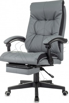 Кресло руководителя Бюрократ CH-824MSG-BF серый, эко.кожа/ткань, крестов. пластик, подст. для ног