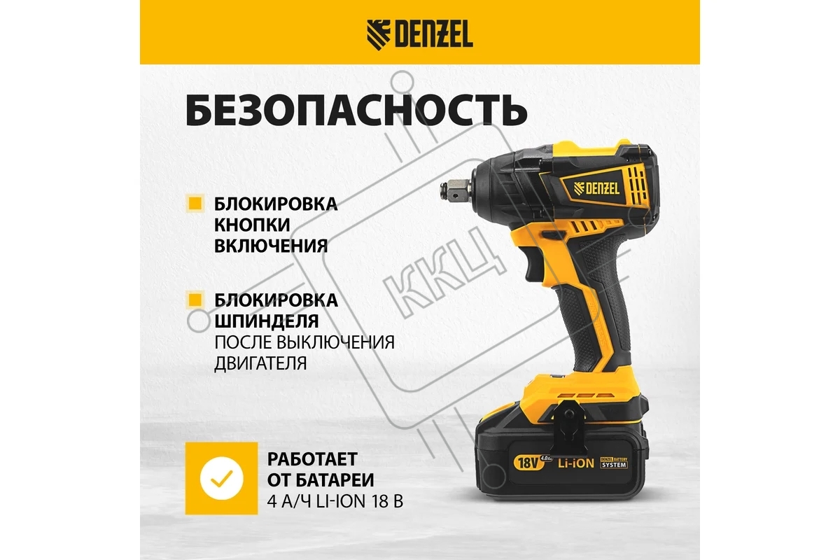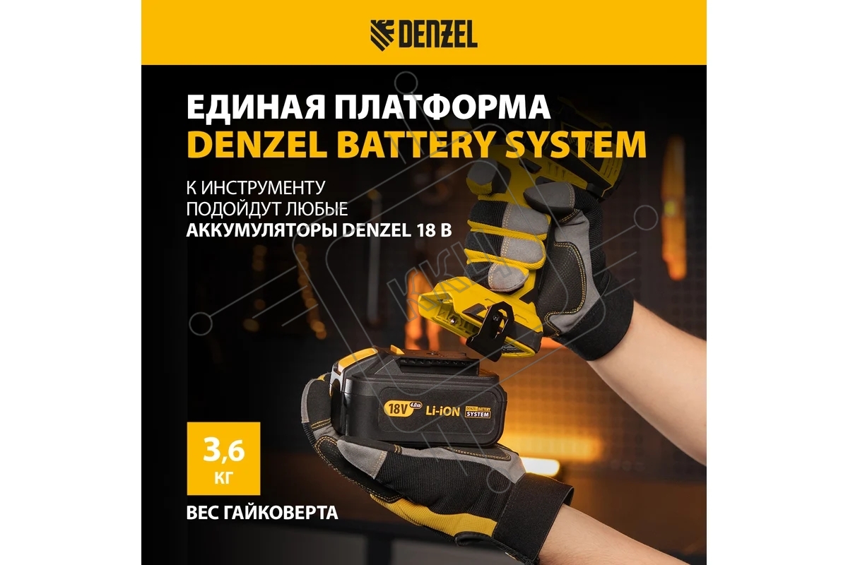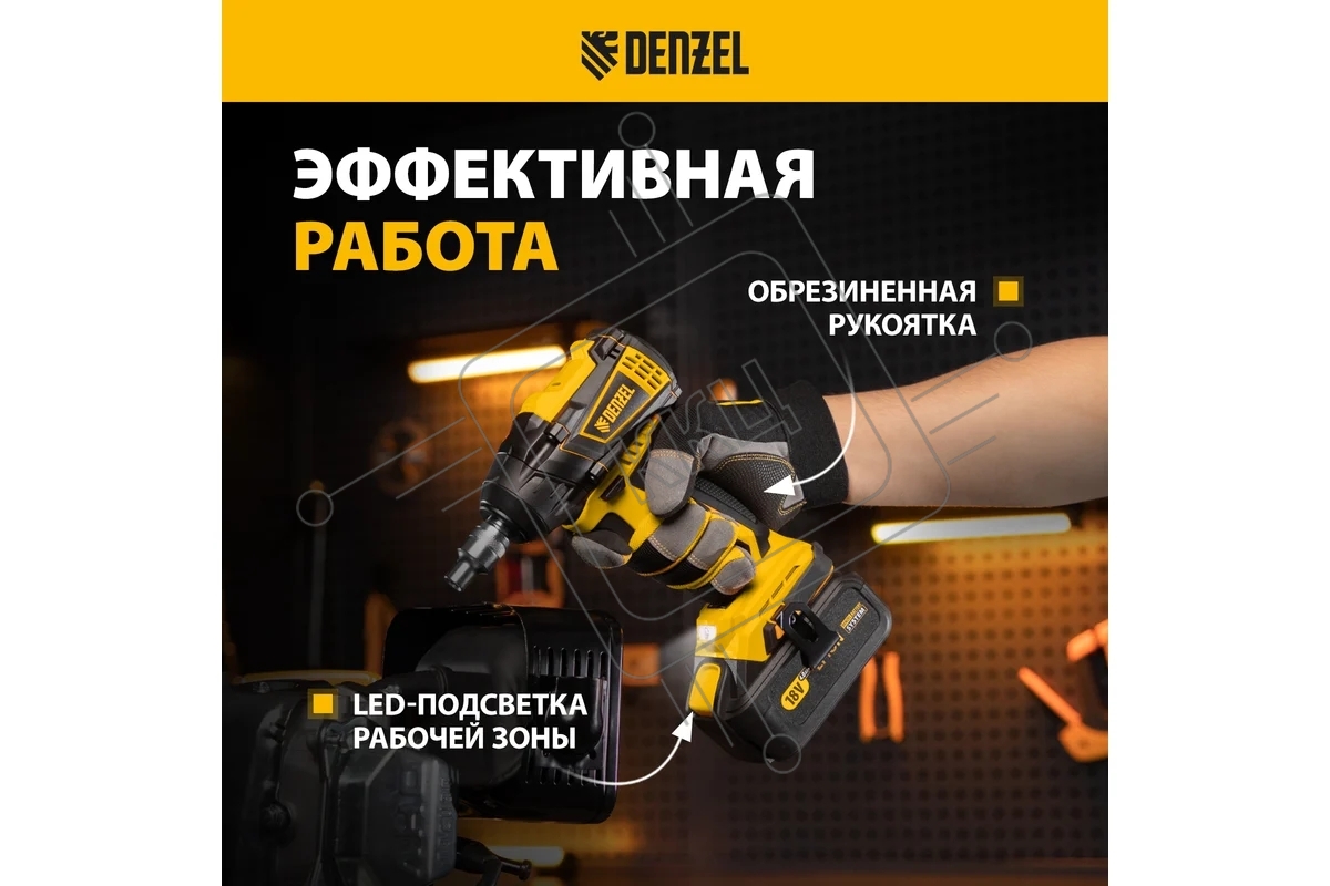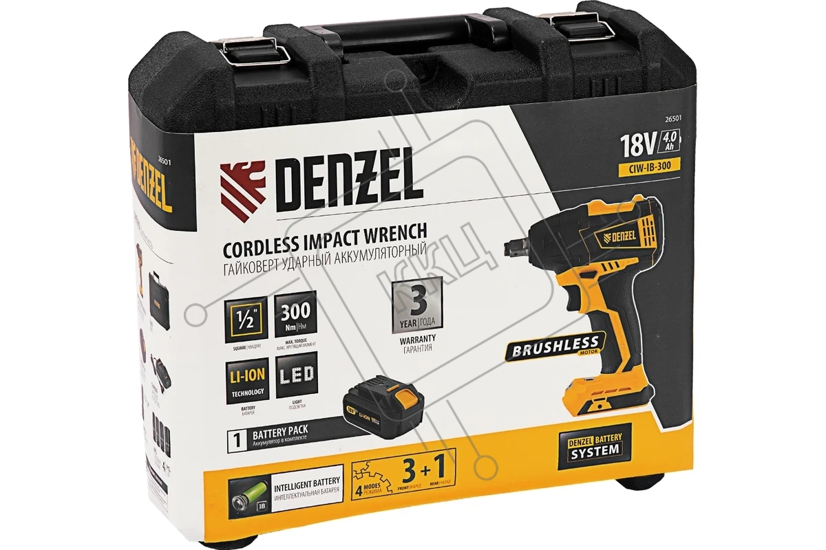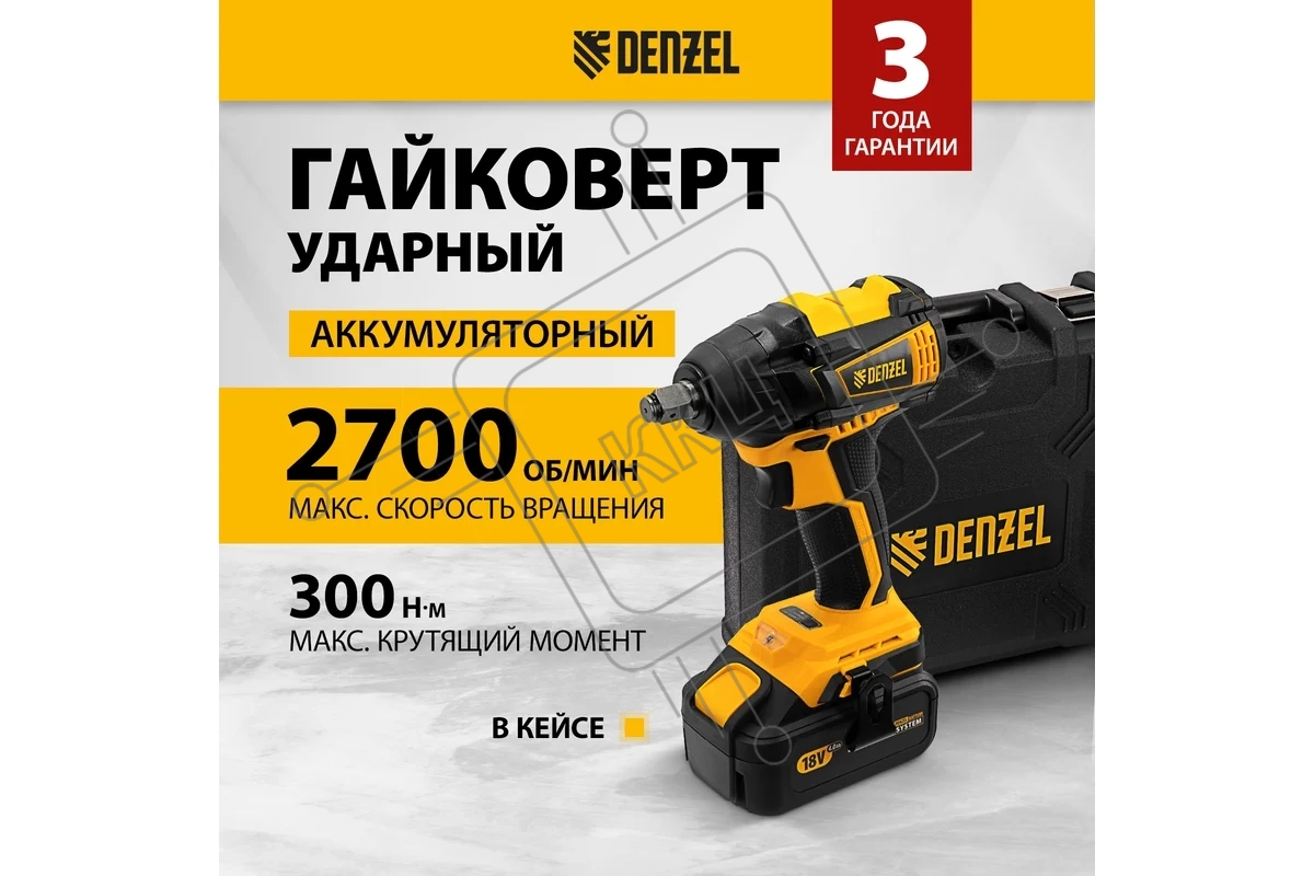 Гайковерт ударный аккумуляторный бесщет CIW-IB-300, Li-ion, 18В, 300Нм Denzel