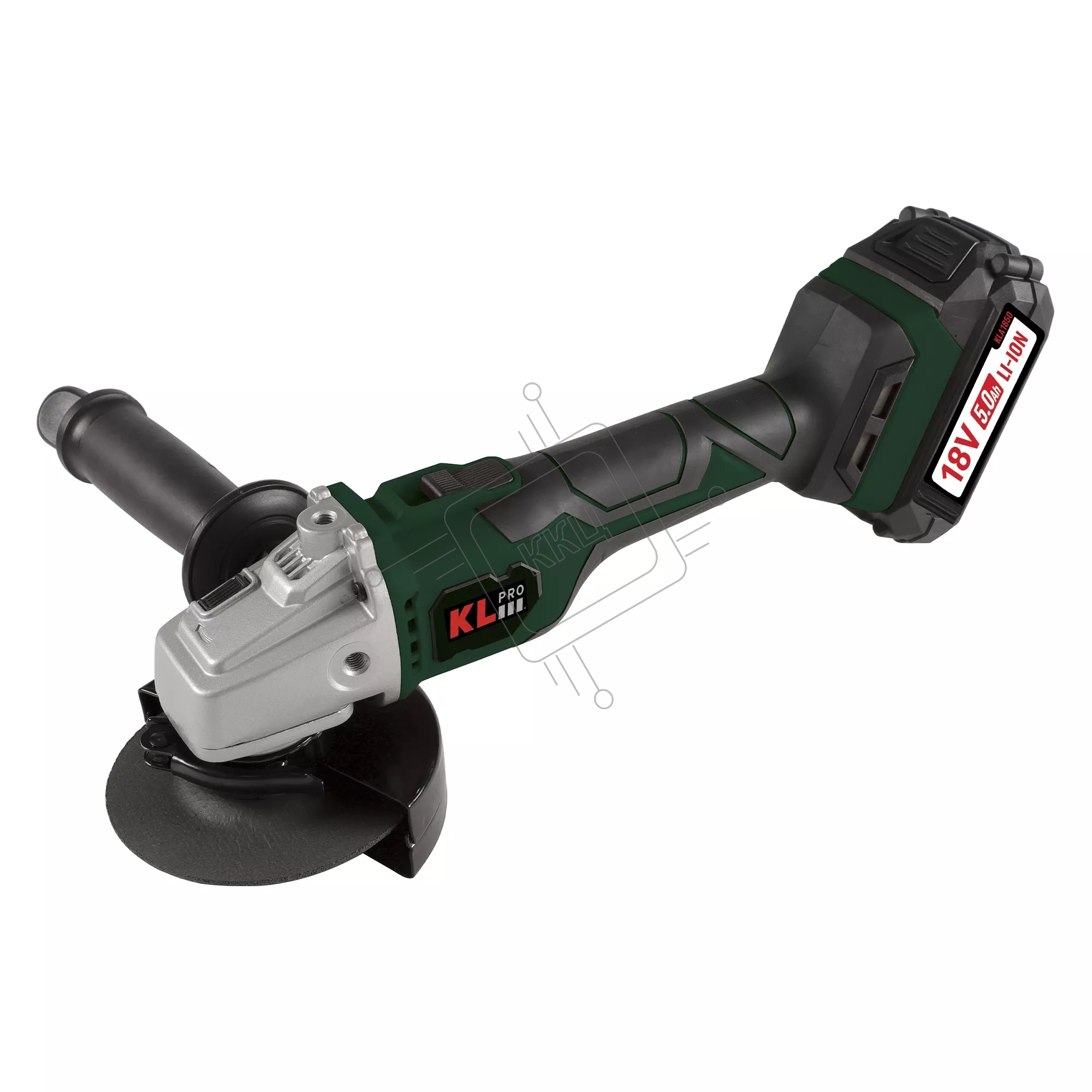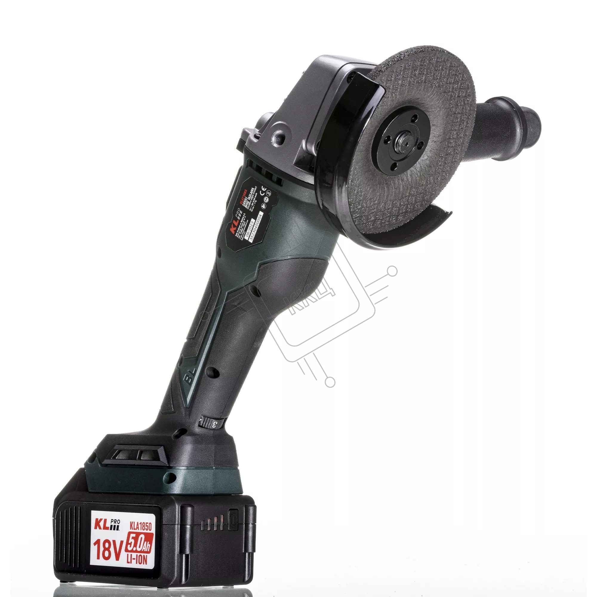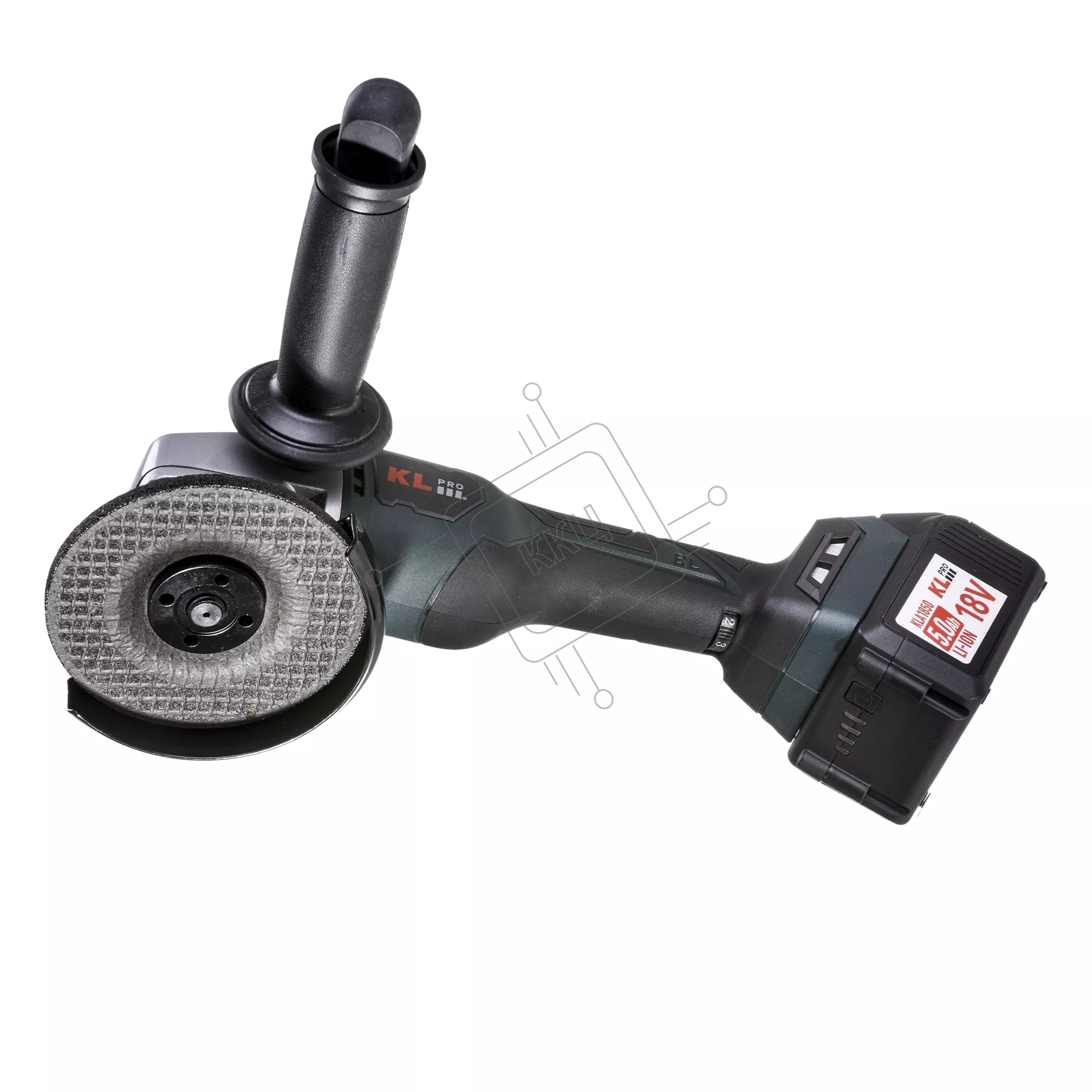 Угловая шлифовальная машина бесщеточная (болгарка) аккумуляторная KLPRO KLAT18BS-50 с регулеровкой оборотов (18В, Li-ion-2шт, 5.0Ач, 115мм, М14, 500-10000 об/мин З/У,в кейсе)