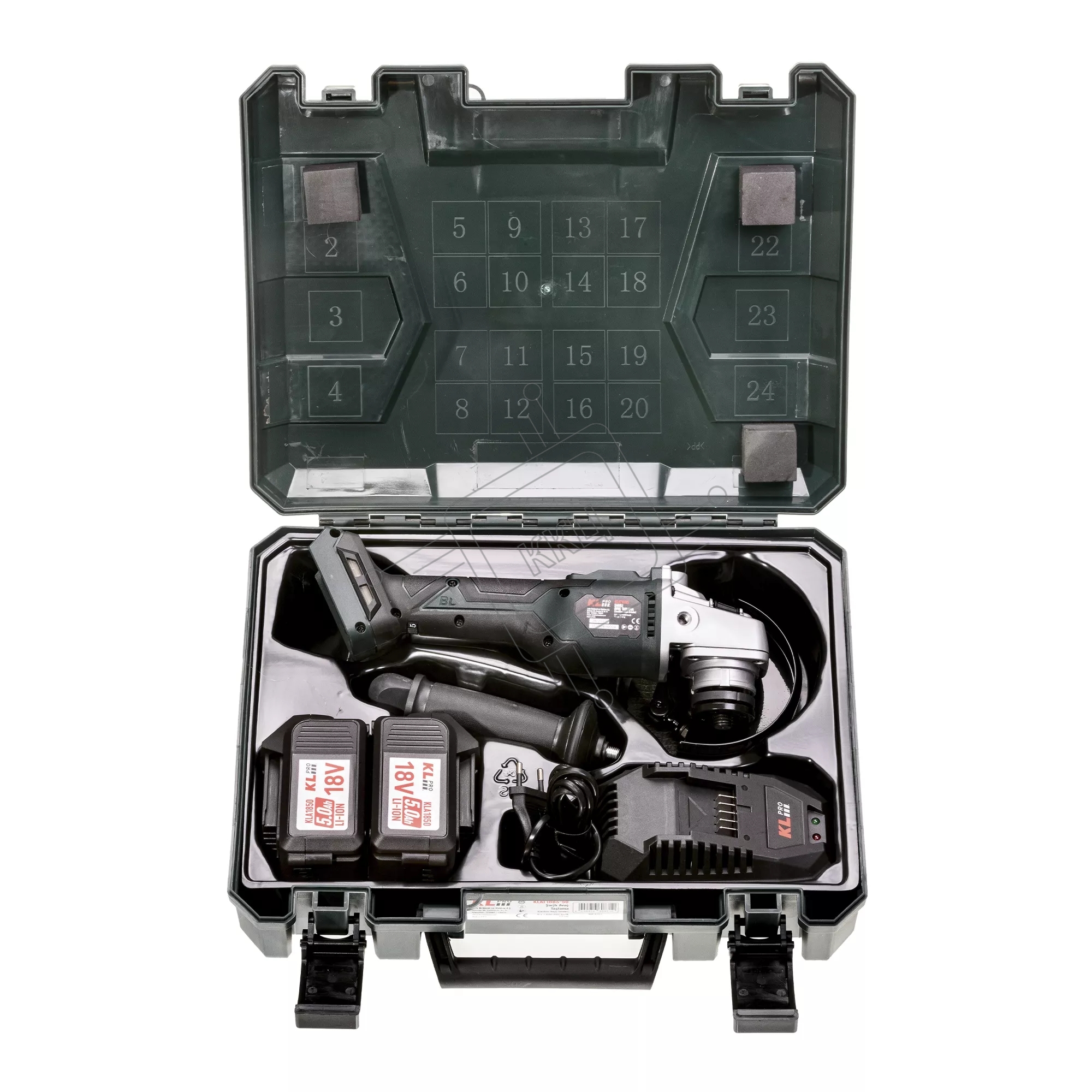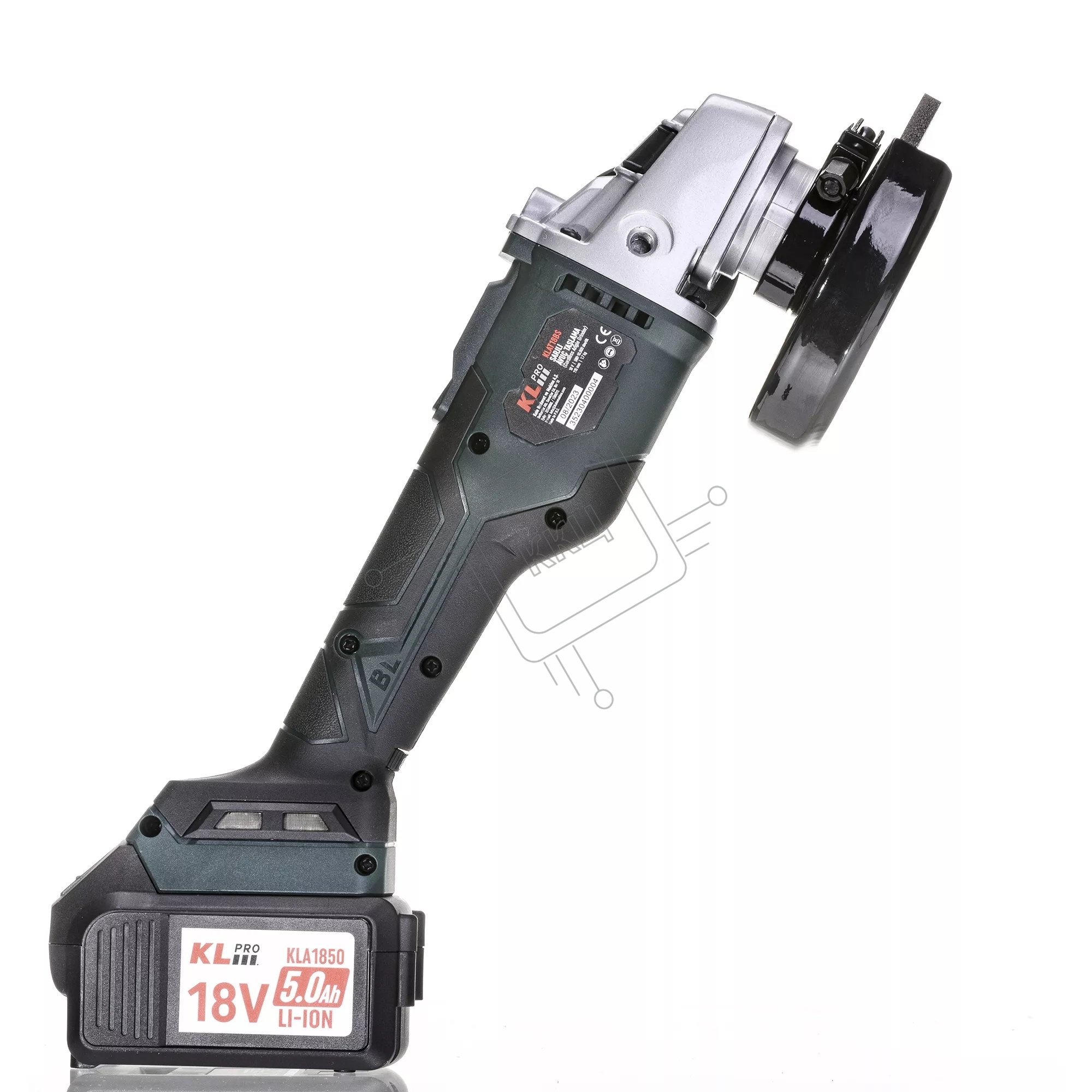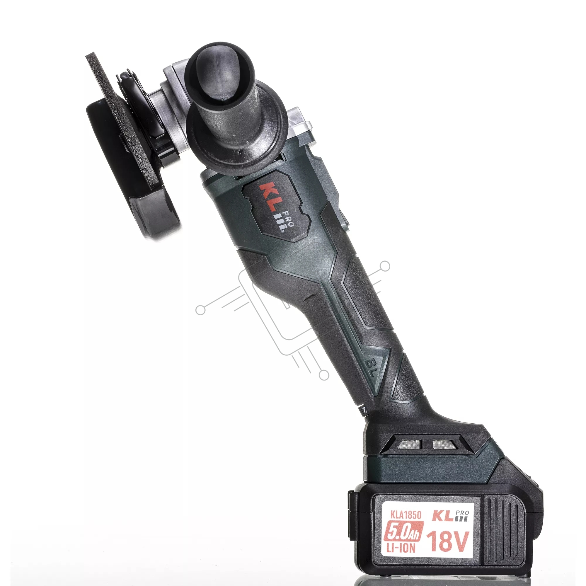 Угловая шлифовальная машина бесщеточная (болгарка) аккумуляторная KLPRO KLAT18BS-50 с регулеровкой оборотов (18В, Li-ion-2шт, 5.0Ач, 115мм, М14, 500-10000 об/мин З/У,в кейсе)