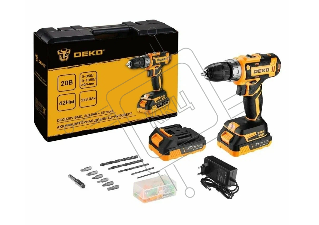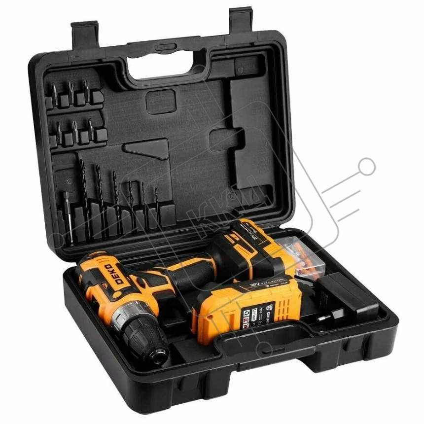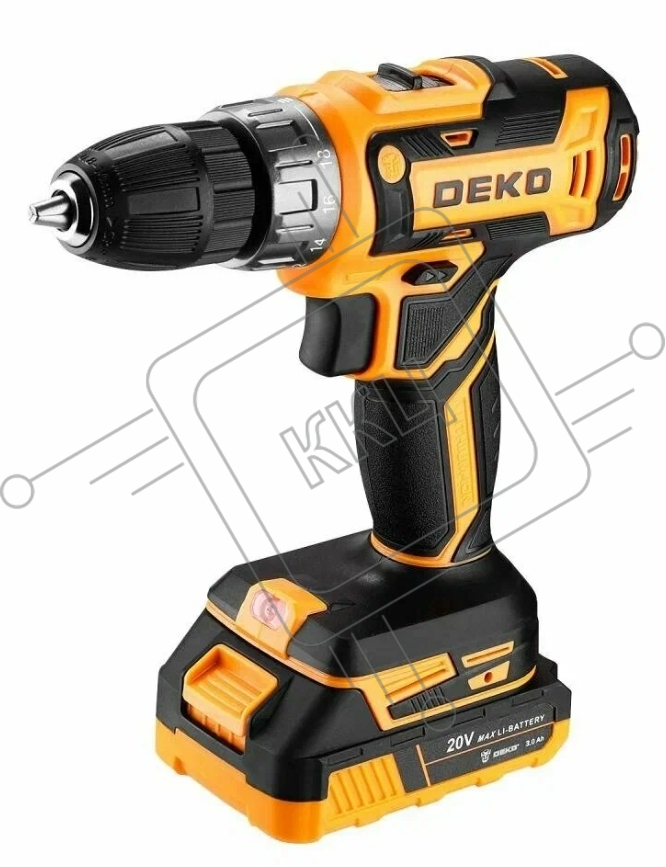 Дрель-шуруповерт Deko DKCD20V, 20 В, 3 Ач, 42 Нм, щеточный