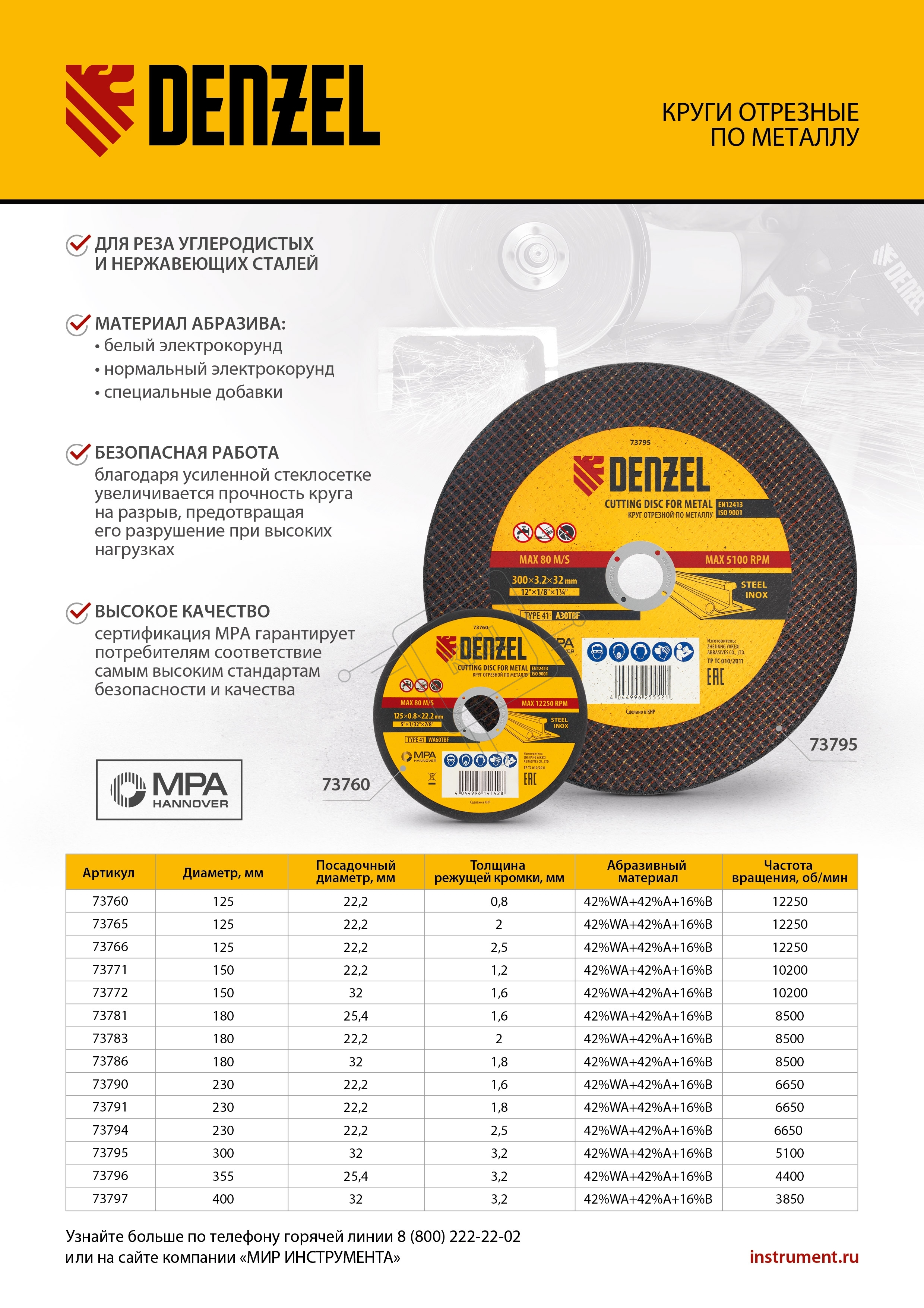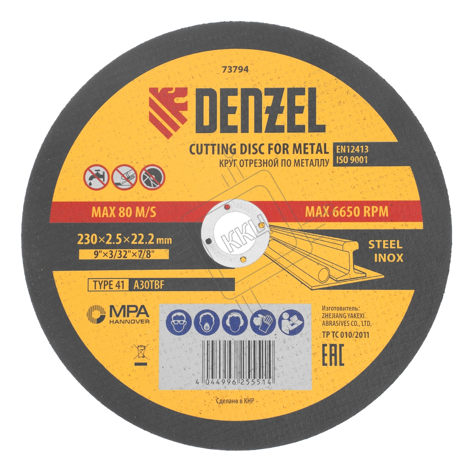 Круг отрезной по металлу Denzel A36TBF 230 х 2,5 х 22,2 мм