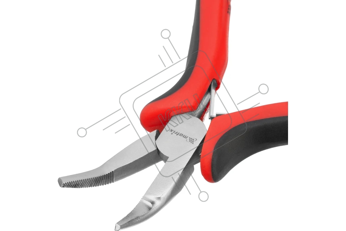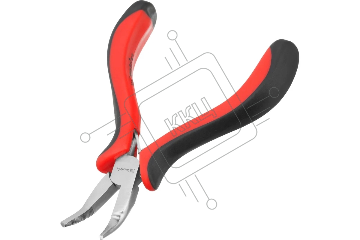 Длинногубцы Matrix Mini, 130 мм, никелированные, изогнутые, авторазжим, двухкомпонентные рукоятки