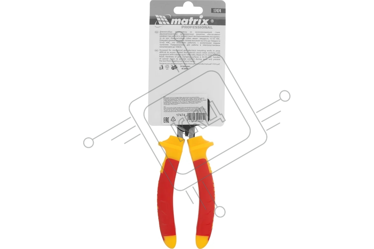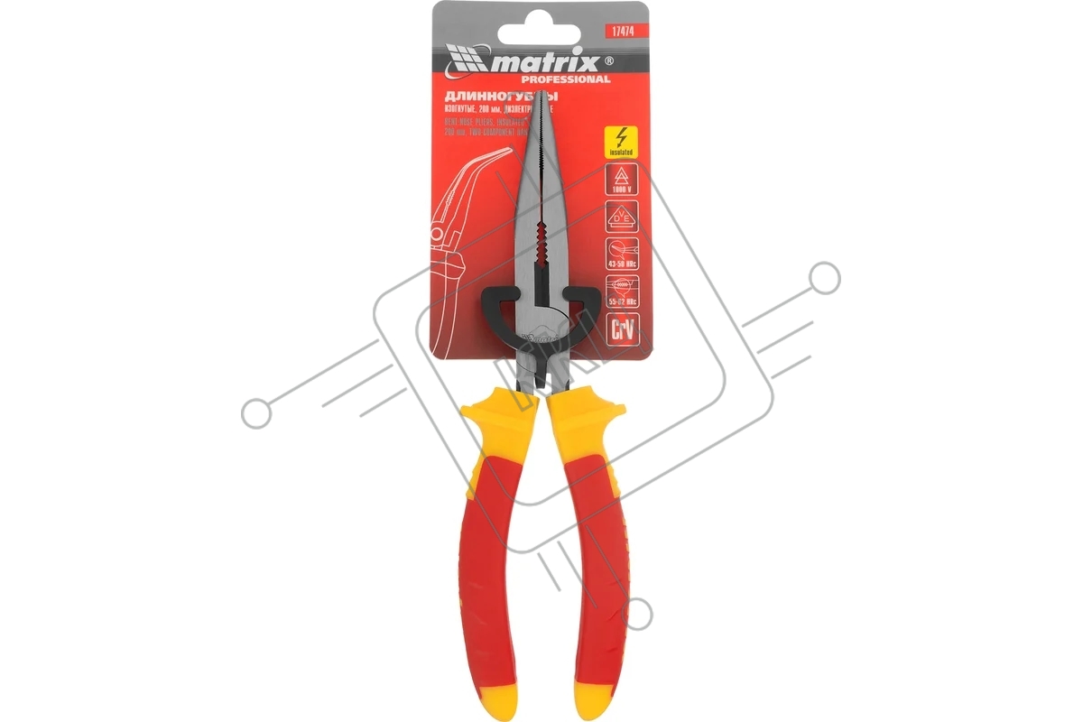 Длинногубцы Matrix изогнутые insulated 200 мм, двухкомпонентные рукоятки