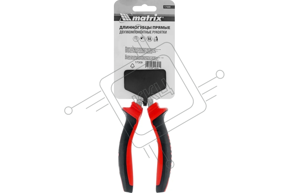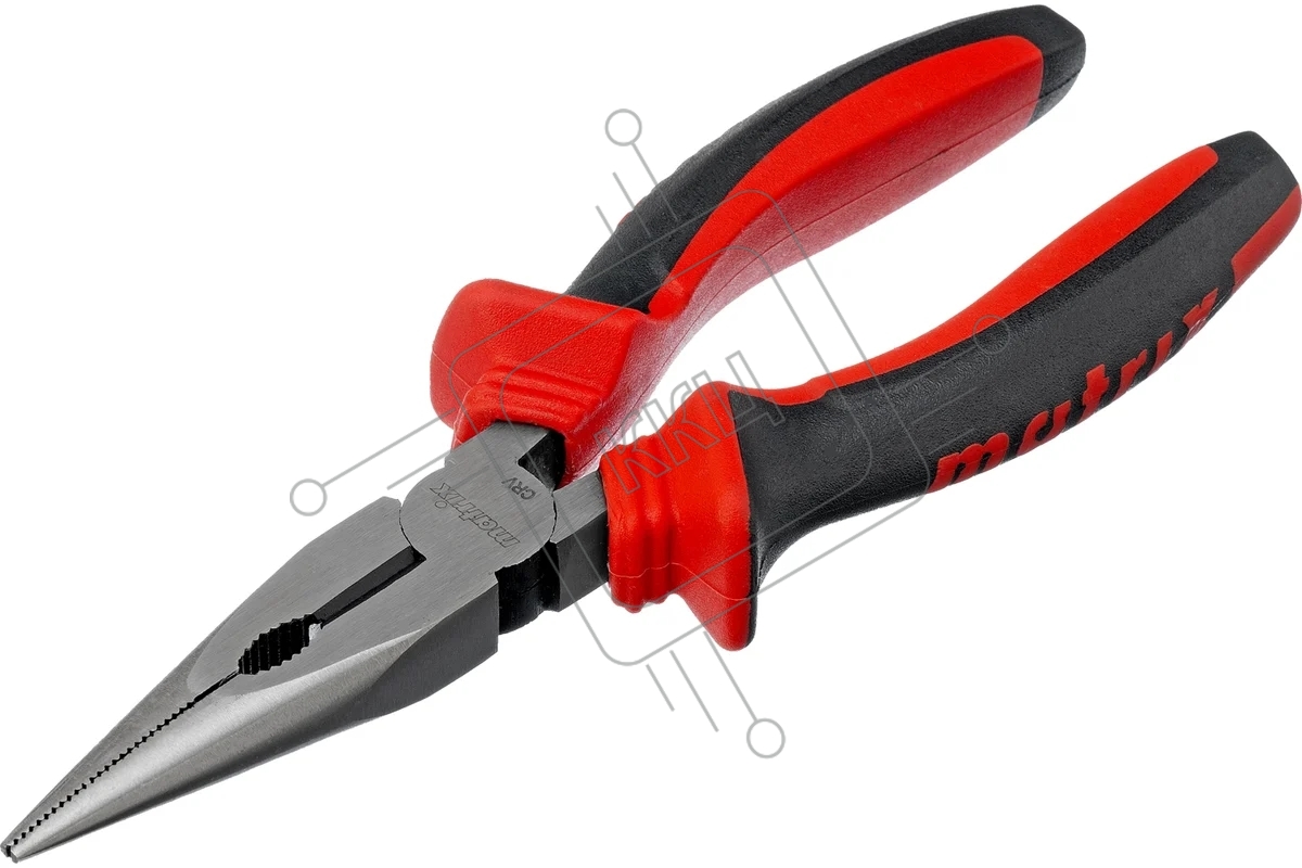 Длинногубцы прямые Matrix, 160 мм, хром-ванадий, двухкомпонентные рукоятки
