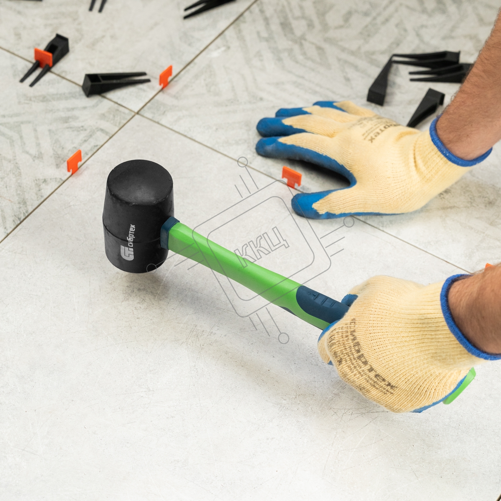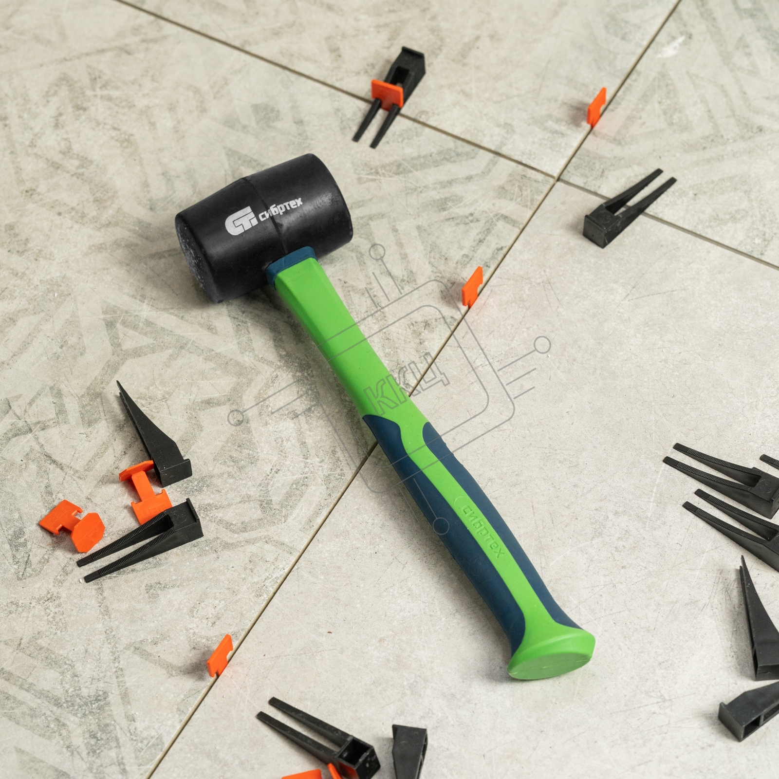 Киянка резиновая Сибртех 450 г, черная резина, фибергласовая рукоятка