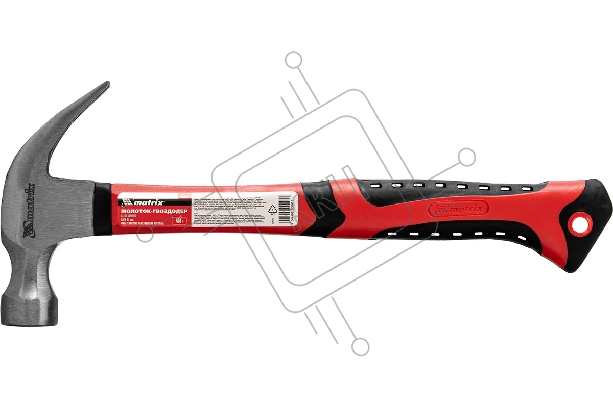 Молоток гвоздодер Matrix 450 г, боек c магнитом, фиберглассовая обрезиненная рукоятка