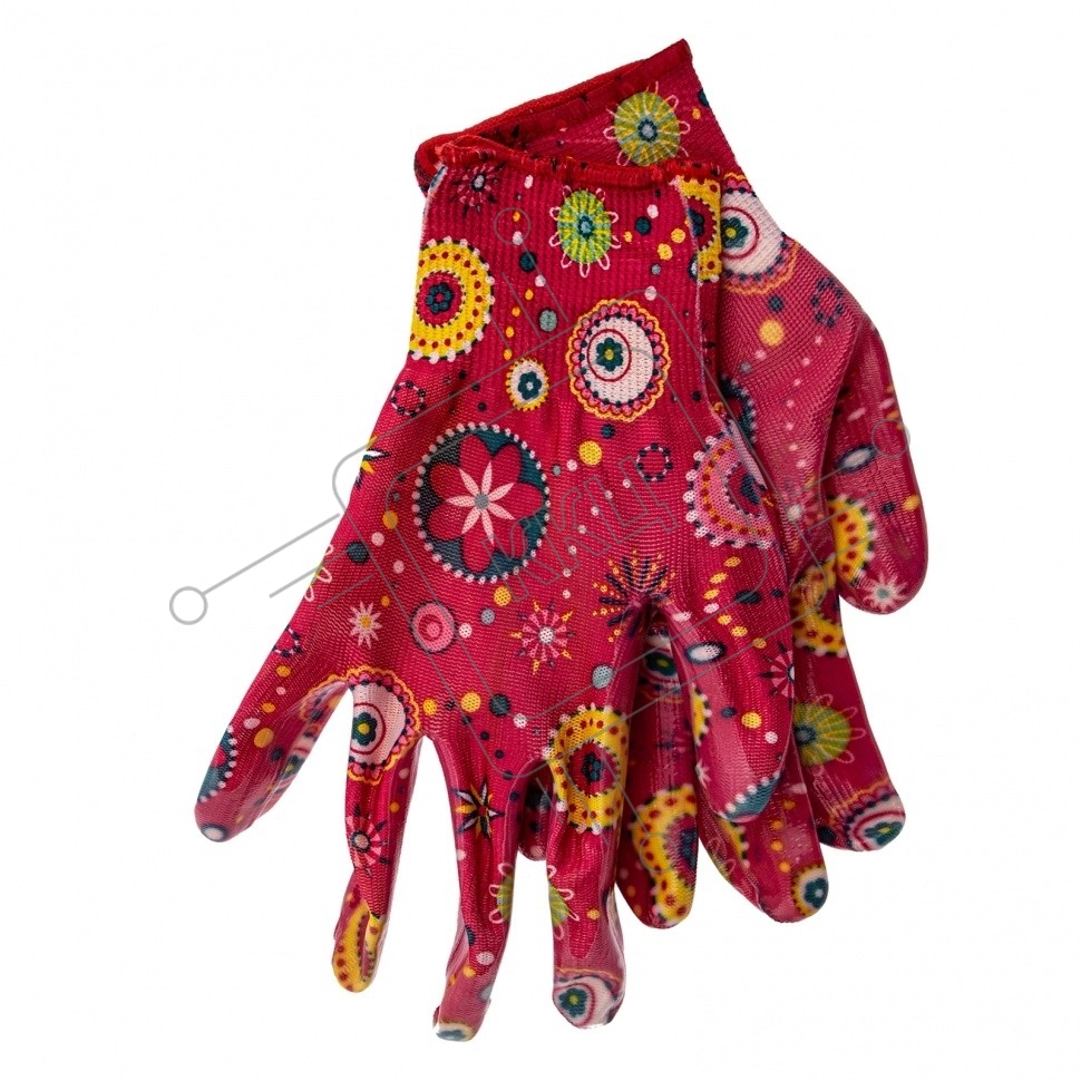 Перчатки садовые Palisad из полиэстера с нитрильным обливом, красные, S