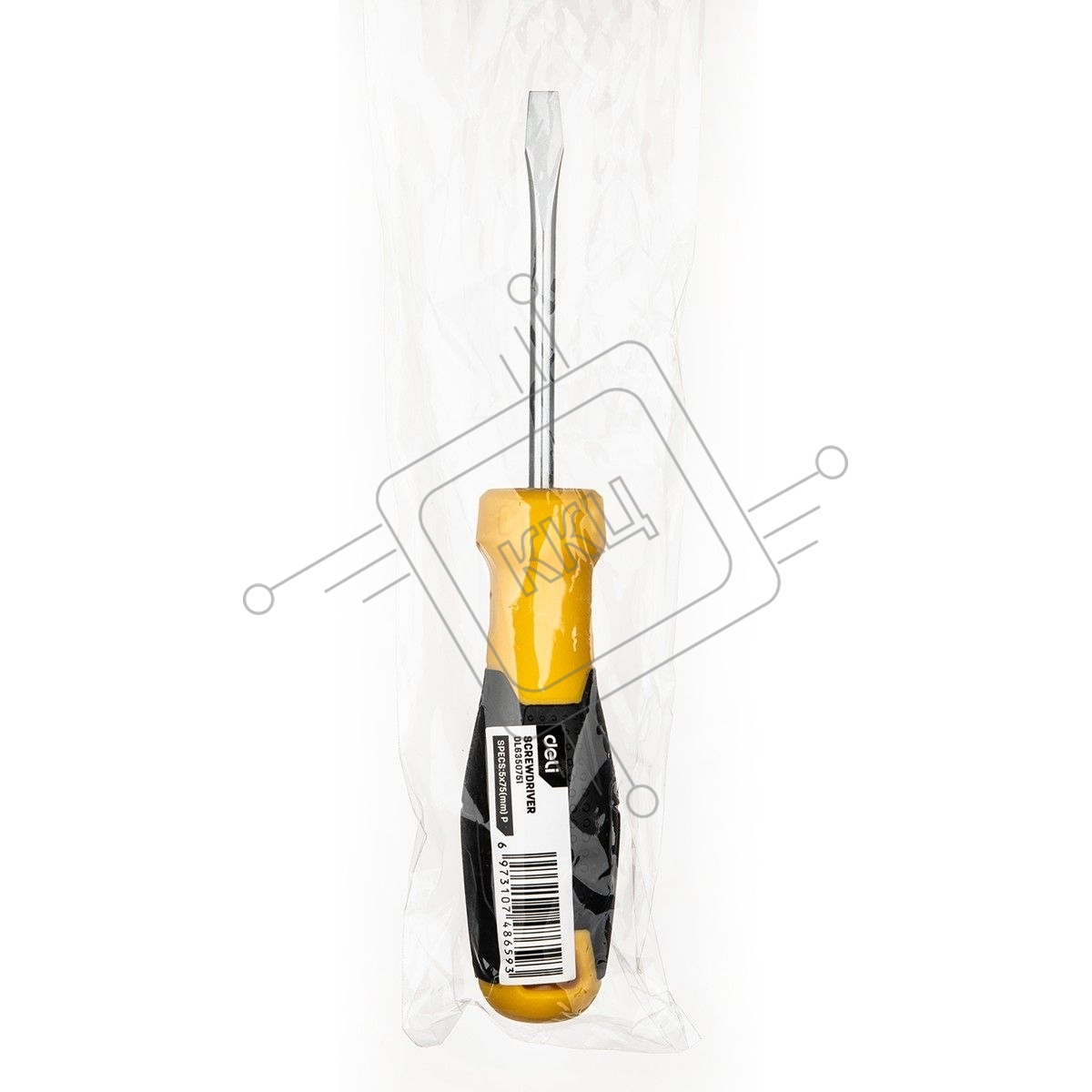 Шлицевая отвертка Deli DL6350751 5х75мм Материал: CR-V. Двухкомпонентная ручка. Хромированная