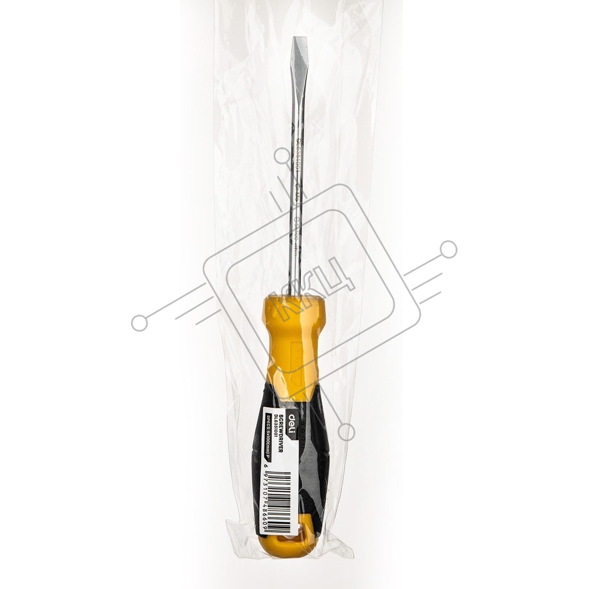 Шлицевая отвертка Deli DL6351001 5х100мм Материал: CR-V. Двухкомпонентная ручка. Хромированная