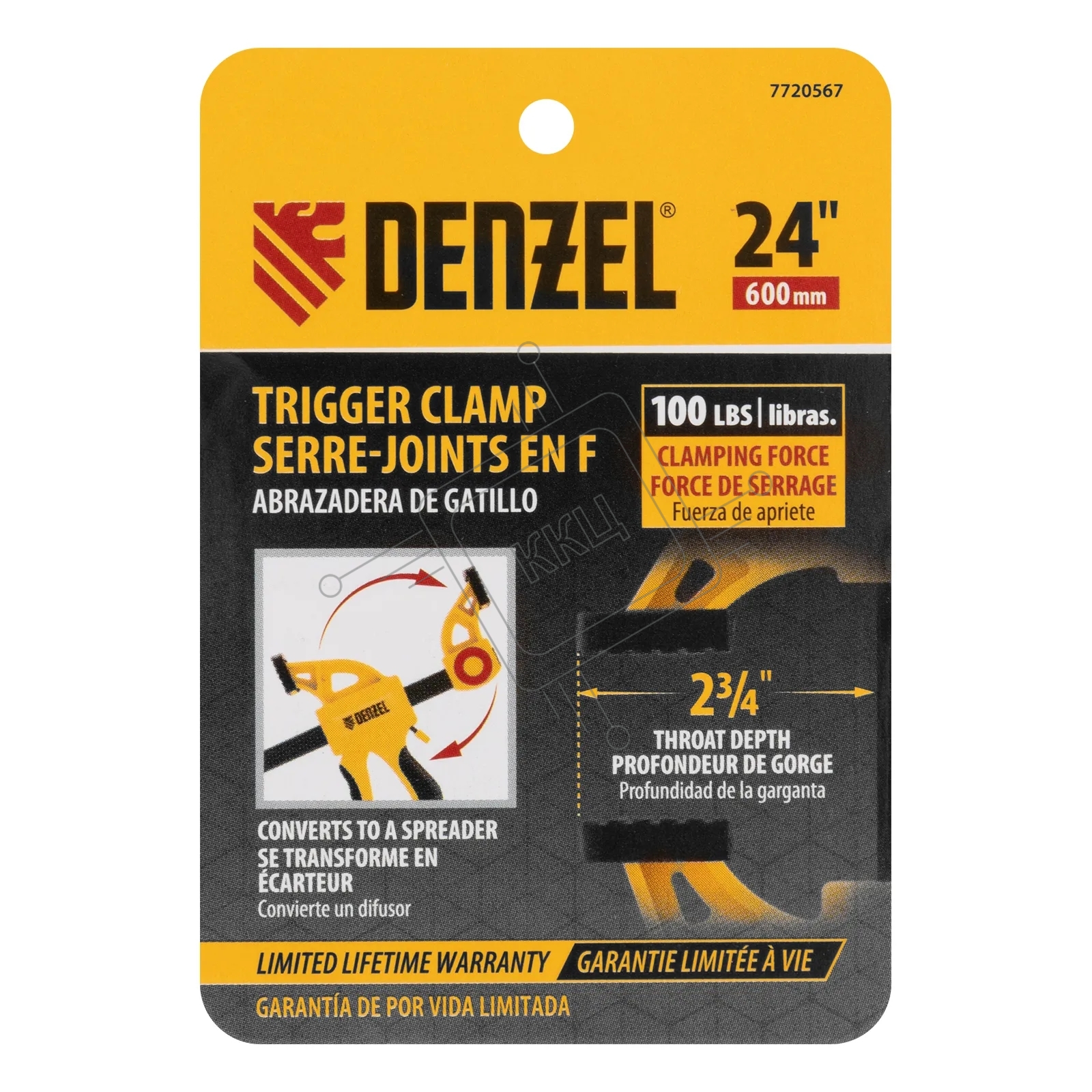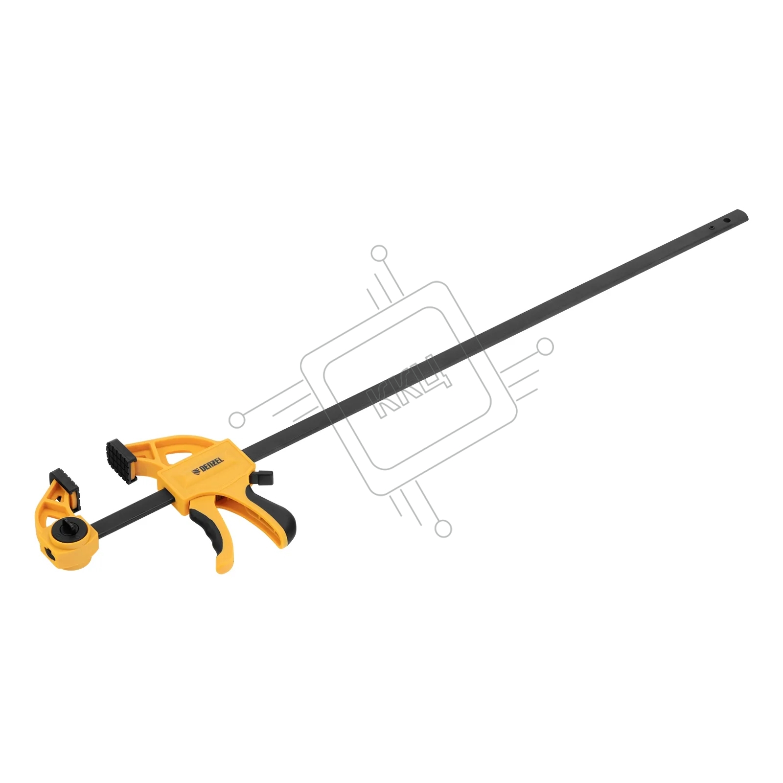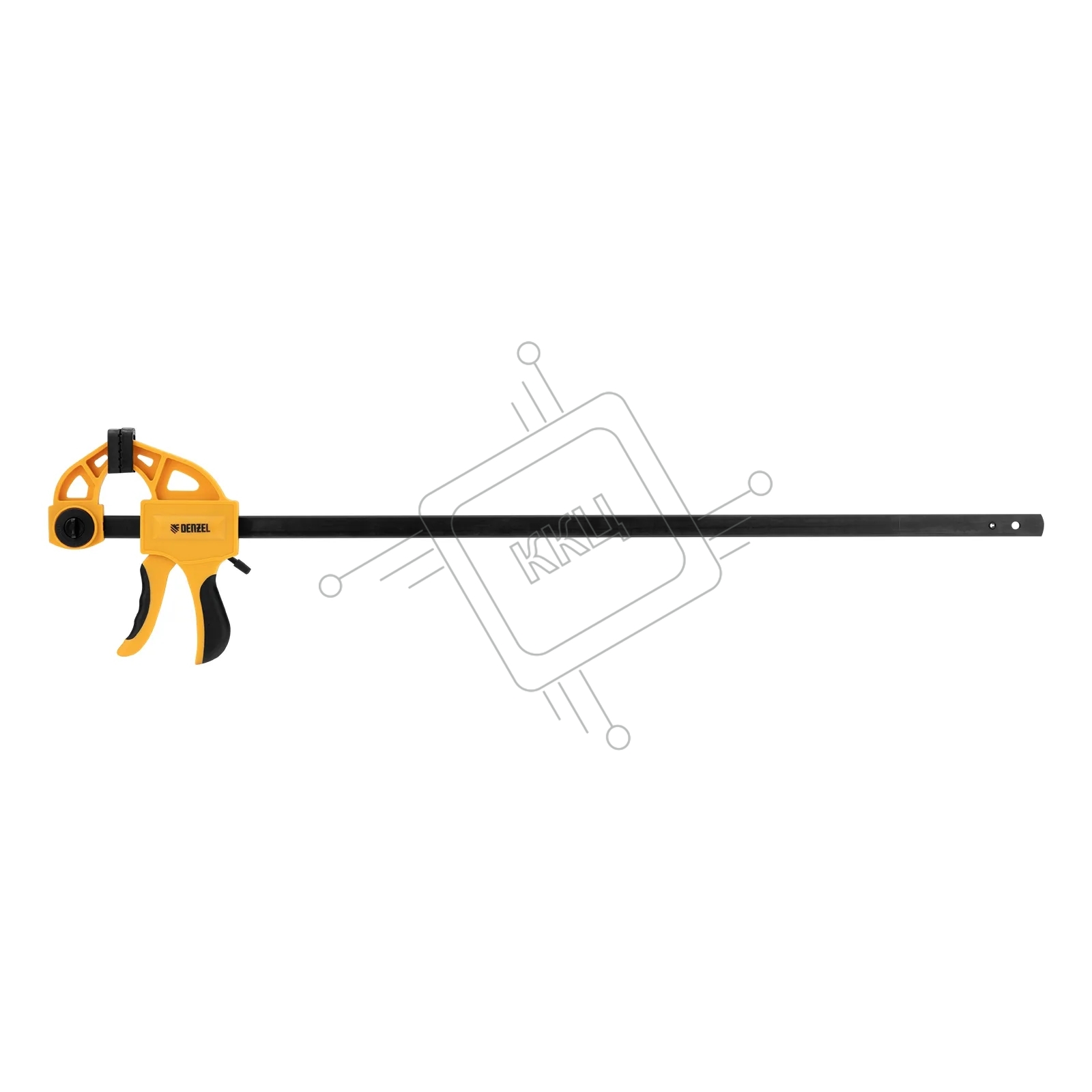 Струбцина Denzel F-образная, быстрозаж., 24"x2 3/4", 600х70мм, пласт.корпус,фиксатор,двухк. рук-ка