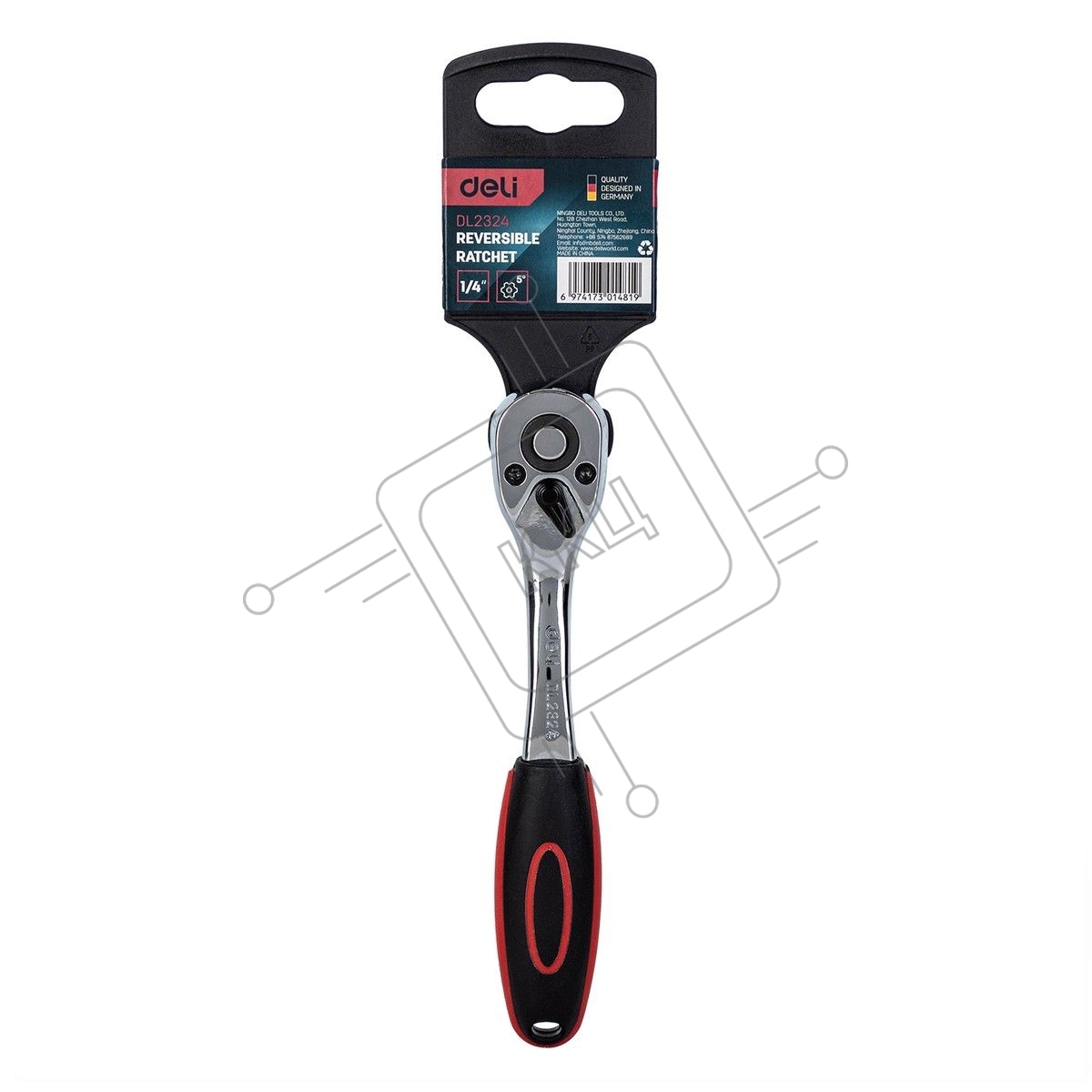 Ключ-трещотка Deli DL2324 1/4"; 150 мм. Двухкомпонентная трещотка, 72T (зубья), шестерня Cr-Mo, быстросъемная