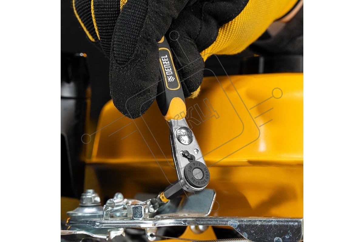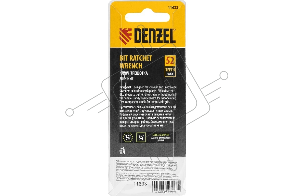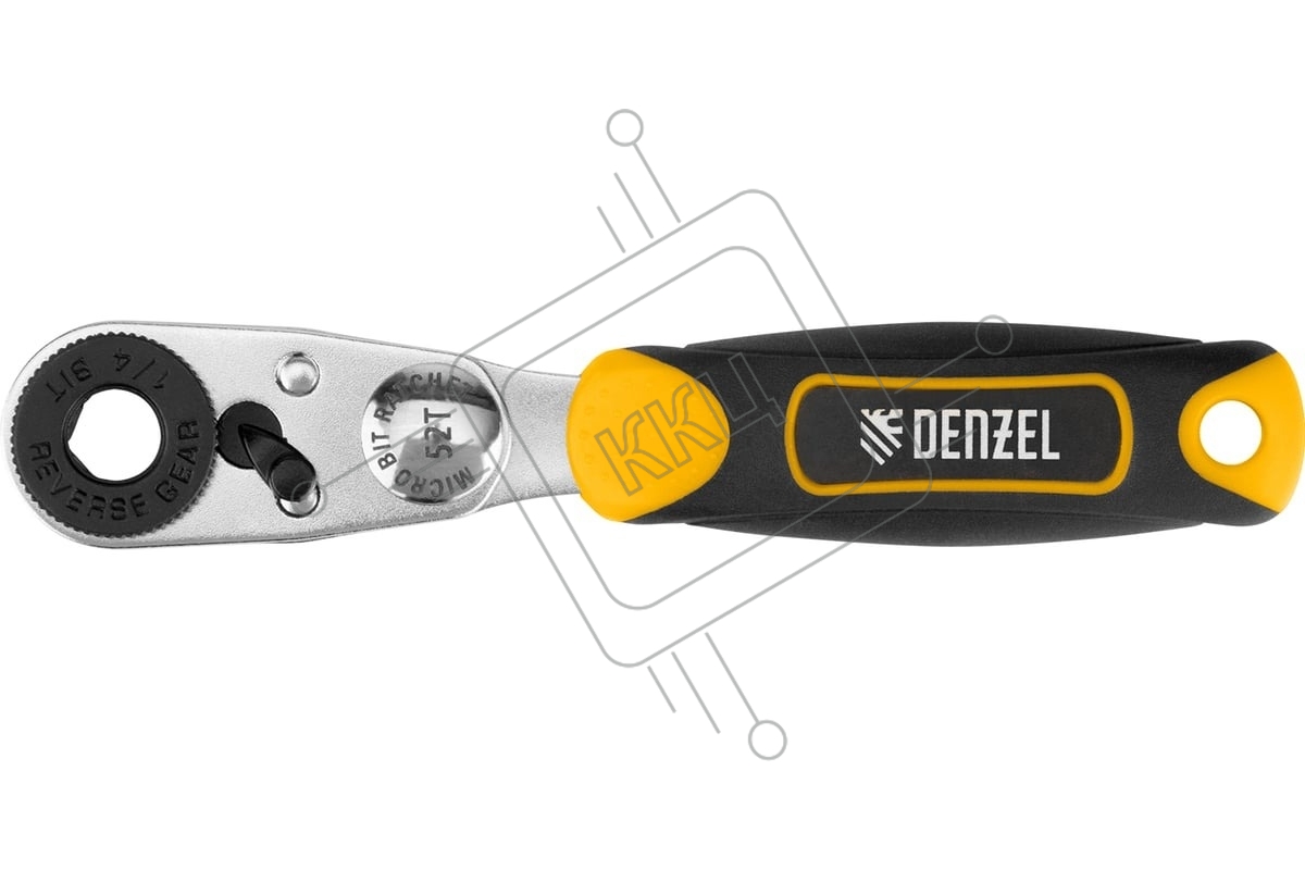 Ключ-трещотка для бит Denzel 1/4", 52 зуба, CrMo, адаптер для торцевых головок