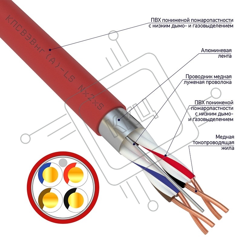 Кабель для пожарной сигнализации Rexant КПСВЭВнг(А)-LS 2x2x0,50 мм², бухта 200м