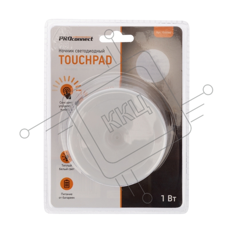 Ночник светодиодный PROсonnect TOUCHPAD с сенсорным выключателем и диммером, 3 х АА, теплое белое свечение