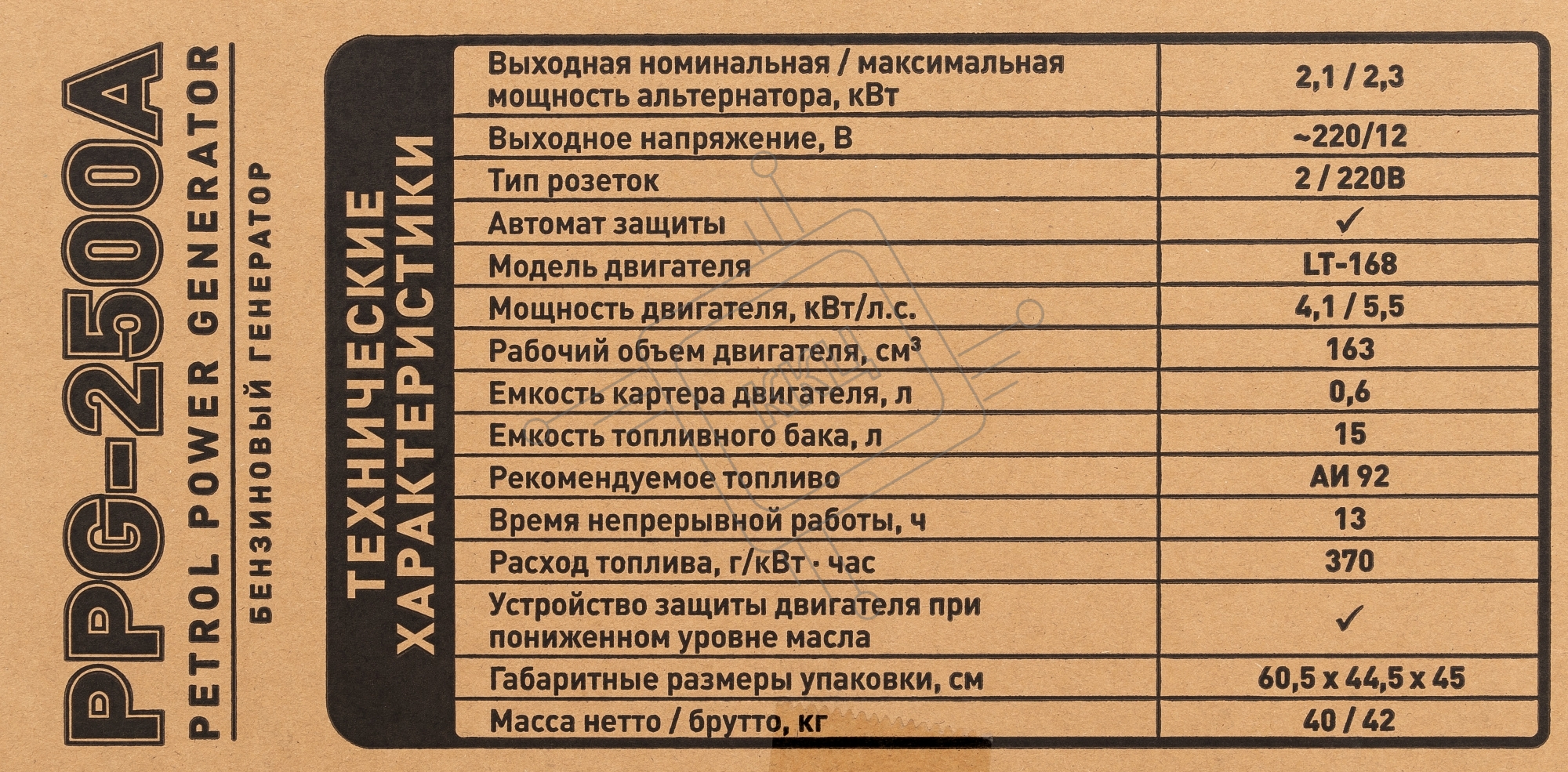 Электрогенератор бензиновый Carver PPG- 2500А, 2.3 кВт, 67 дБ, 40 кг