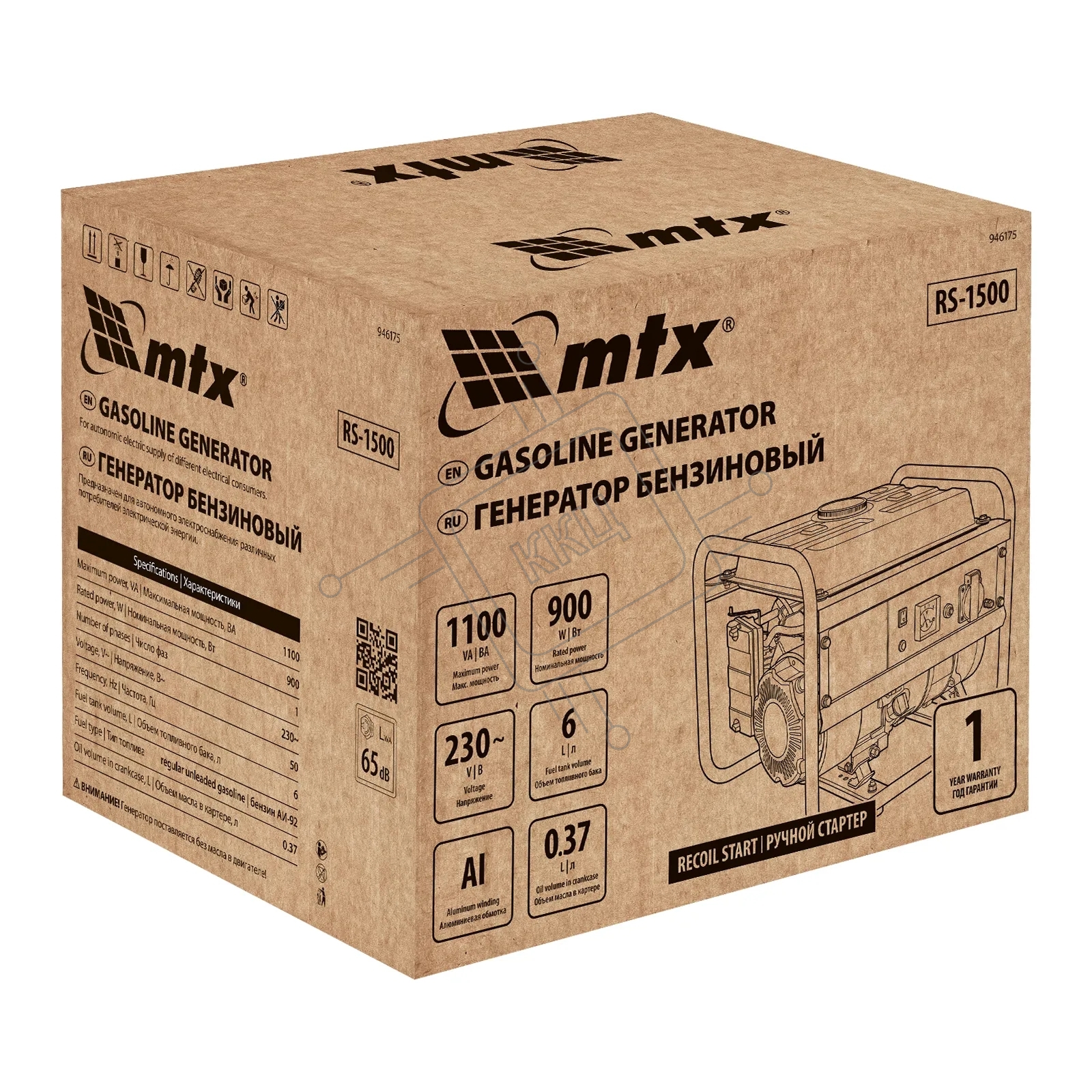Генератор бензиновый MTX RS-1500, 1,1 кВт, 230В, ручной стартер