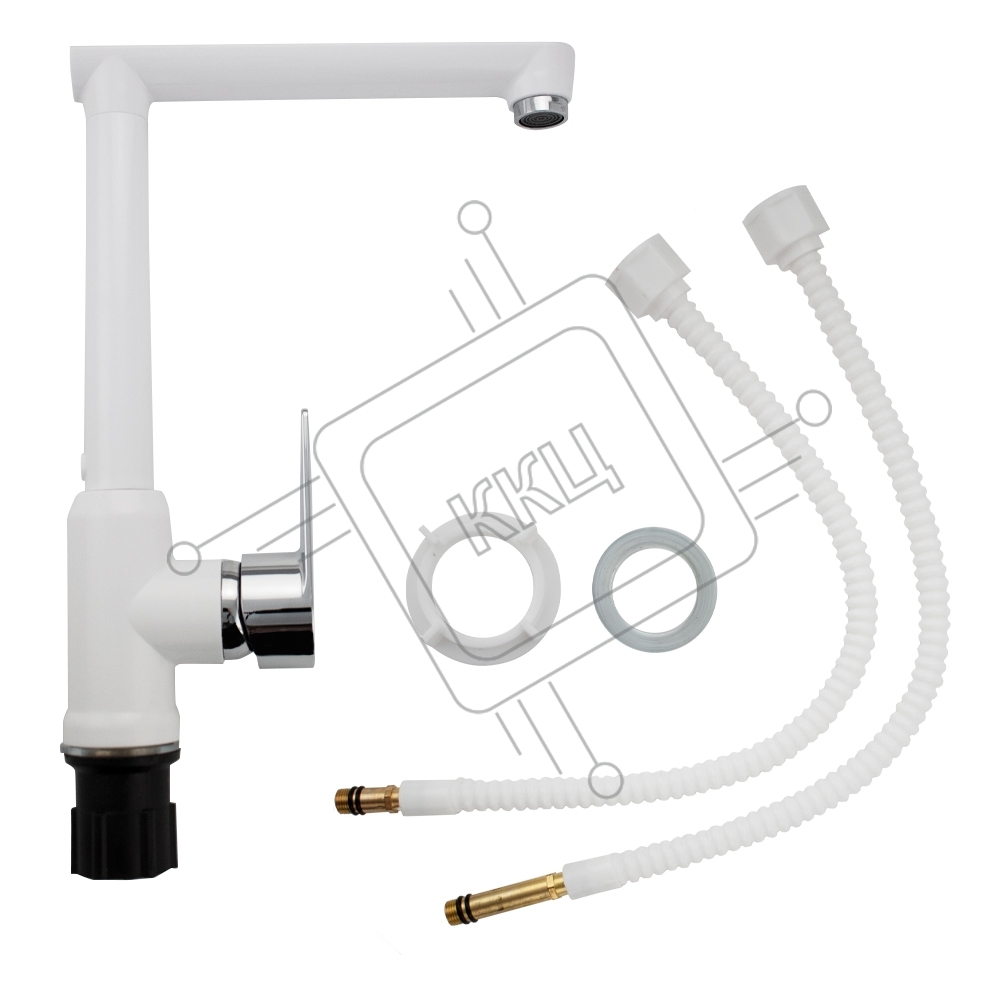 Смеситель на кухню, боковой Г-образный излив, шаровый из высокопрочного пластика АБС БЕЛЫЙ BRIMIX 466