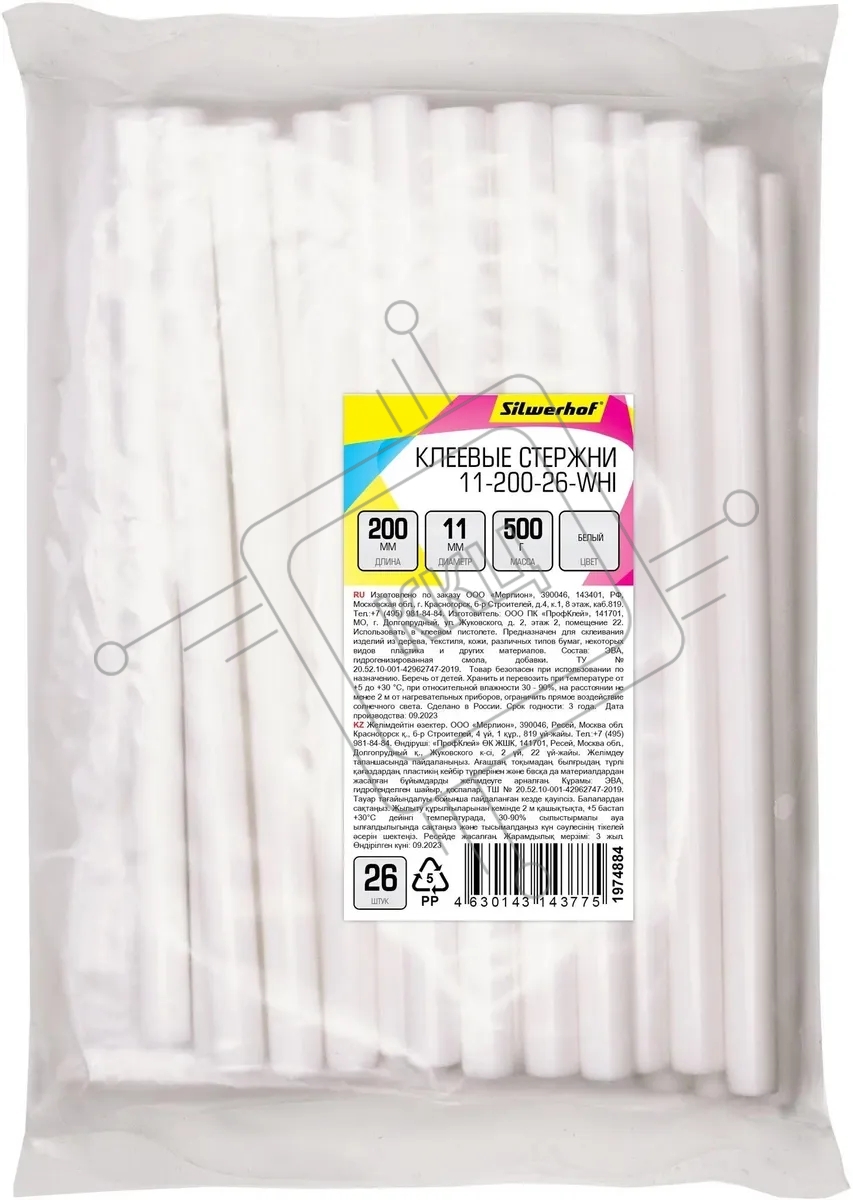 Клеевые стержни Silwerhof 11-200-26-WHI дл.200мм D11мм белый упак:26шт