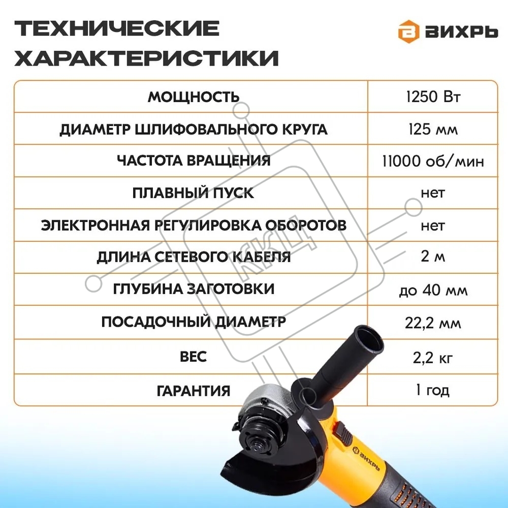 Углошлифовальная машина Вихрь УШМ-1251 900/72/12/23