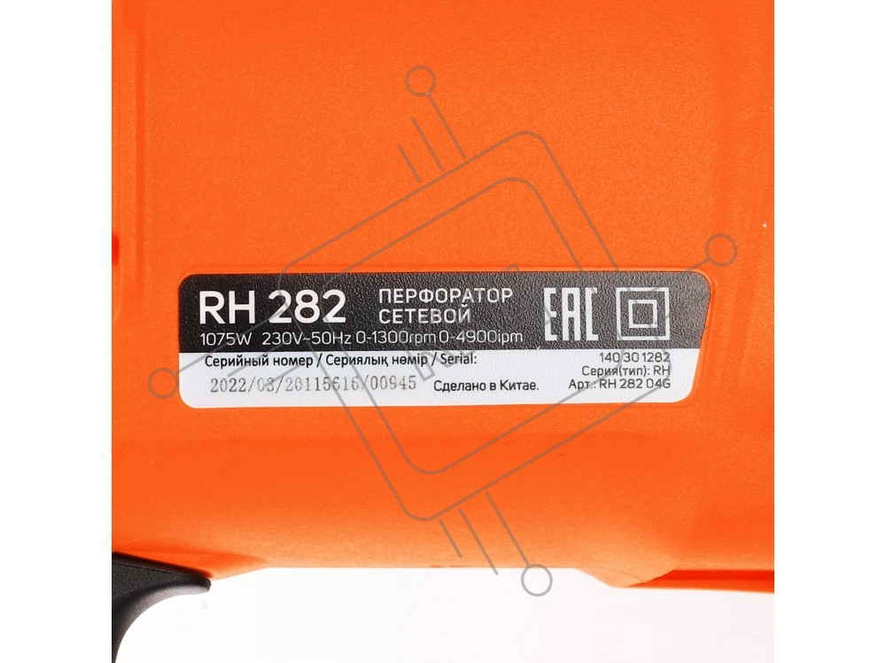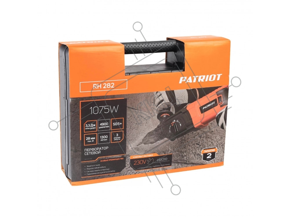 Перфоратор PATRIOT RH 282, 1075Вт, 4900уд/мин, 1300об/мин, 3,3Дж, макс. диаметр 28мм, 3 режима работы, глубиномер, кейс, щеточный реверс