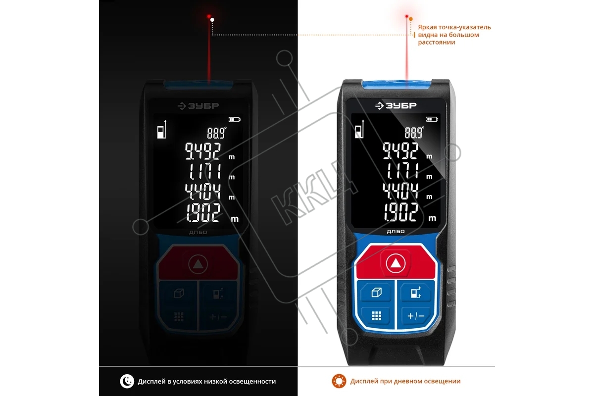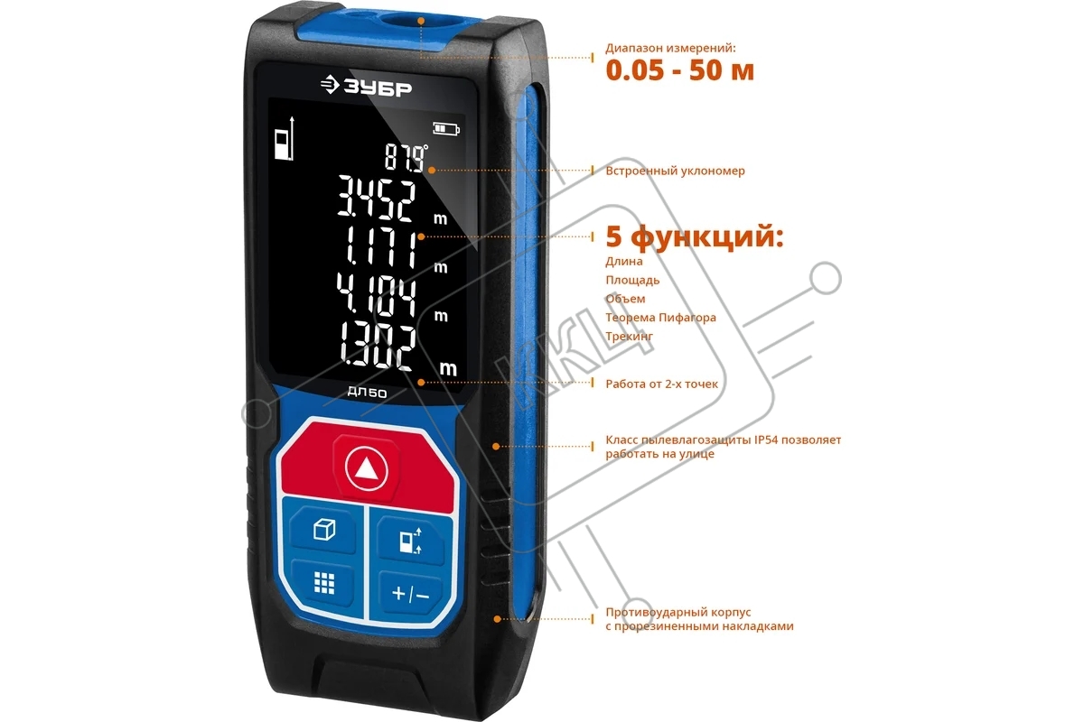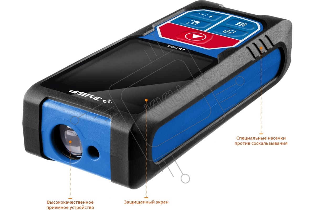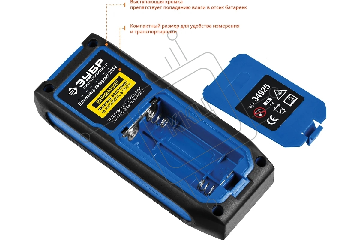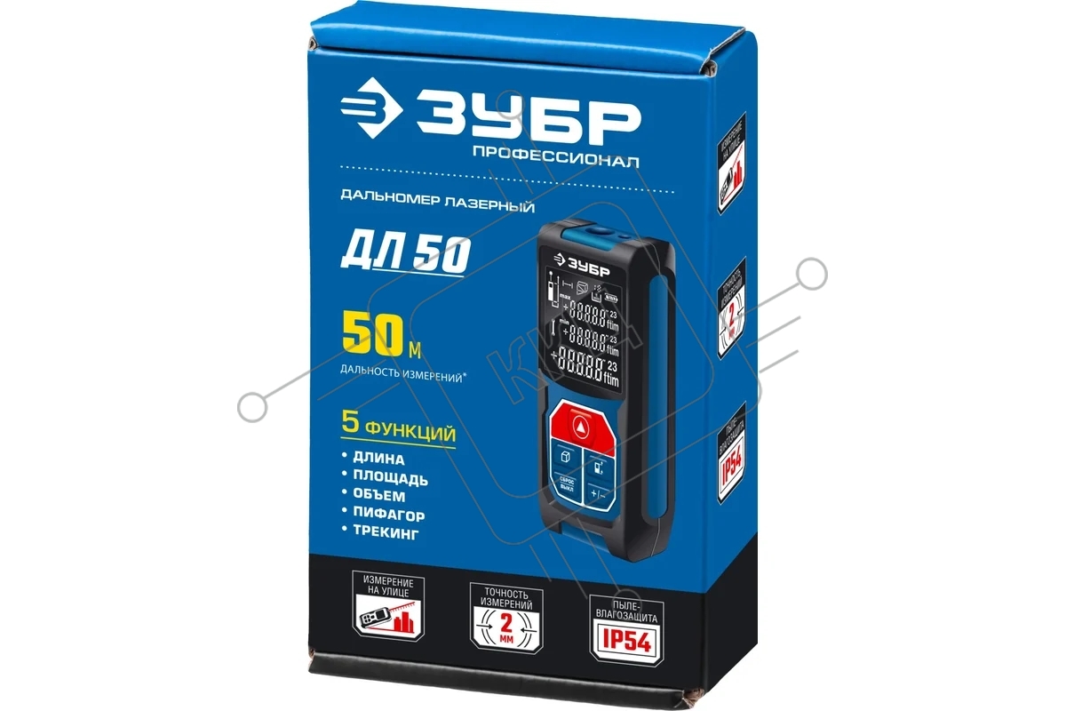 Дальномер лазерный "ДЛ-50", точность 2 мм, дальность 50м, класс защиты IP54, ЗУБР Профессионал 34925