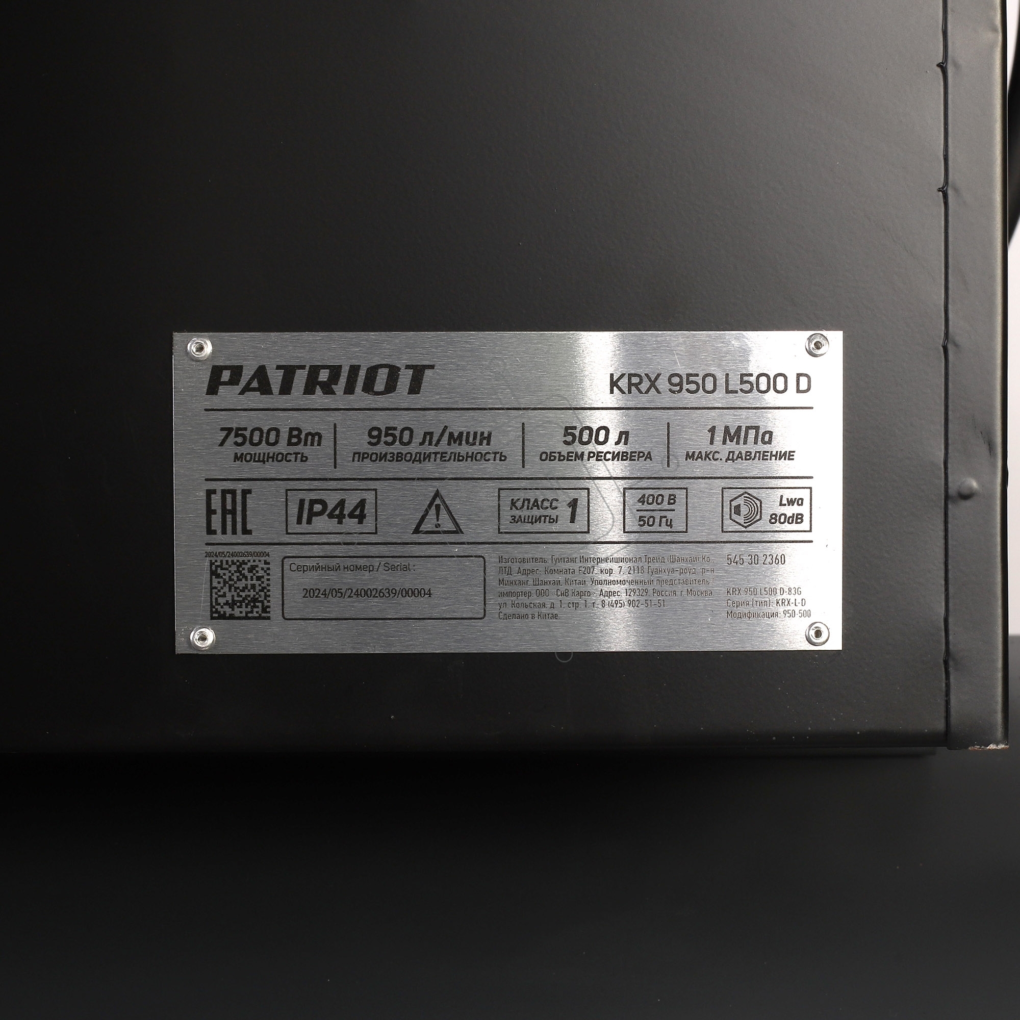 Компрессор PATRIOT KRX 950 L500 D, поршневой, ременной, масляный, 950 л/мин, 500 л, 10 бар, 5.5 кВт, 400 В