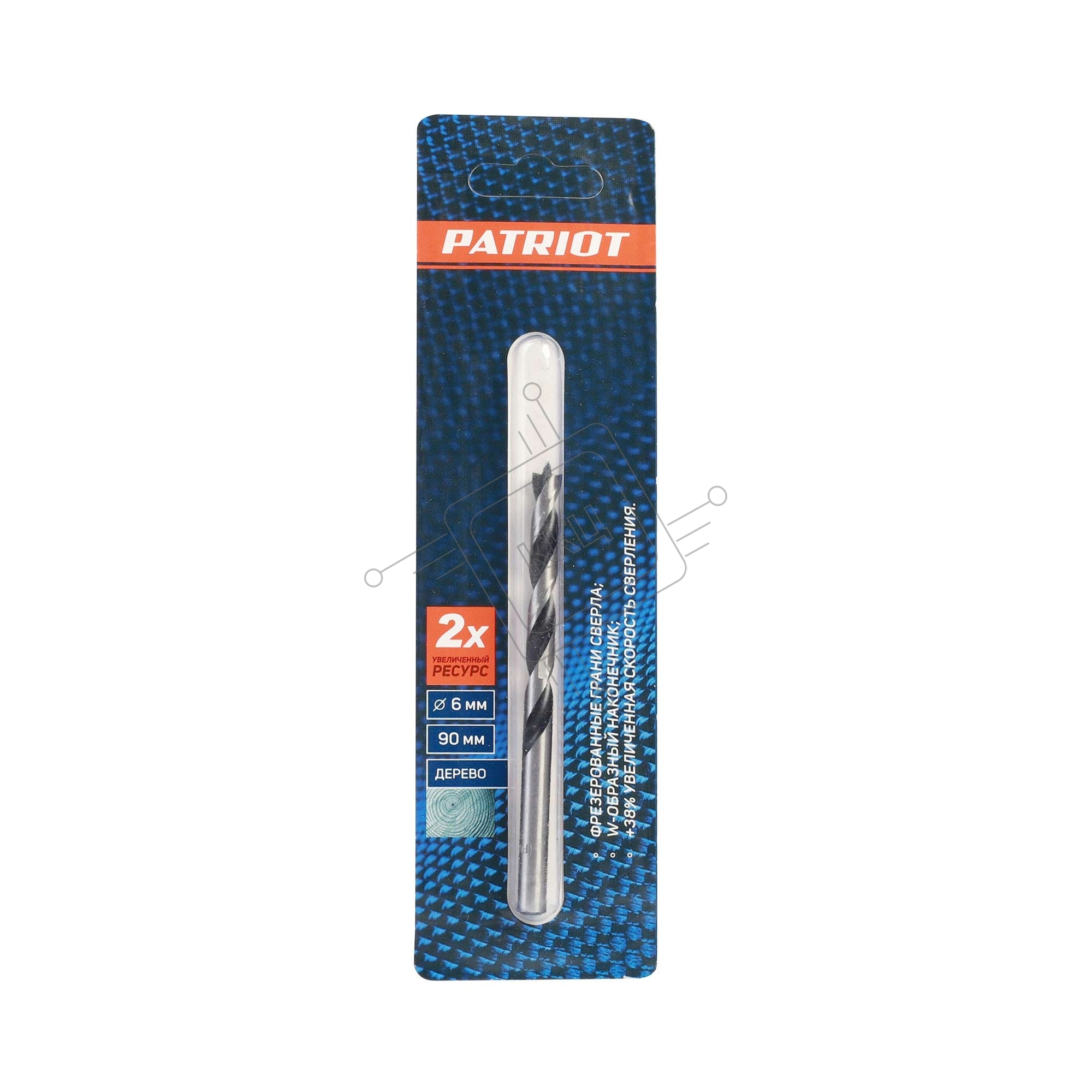 Сверло EDGE by PATRIOT по дереву спиральное 6 мм, W-образная заточка, 1 шт в блистере