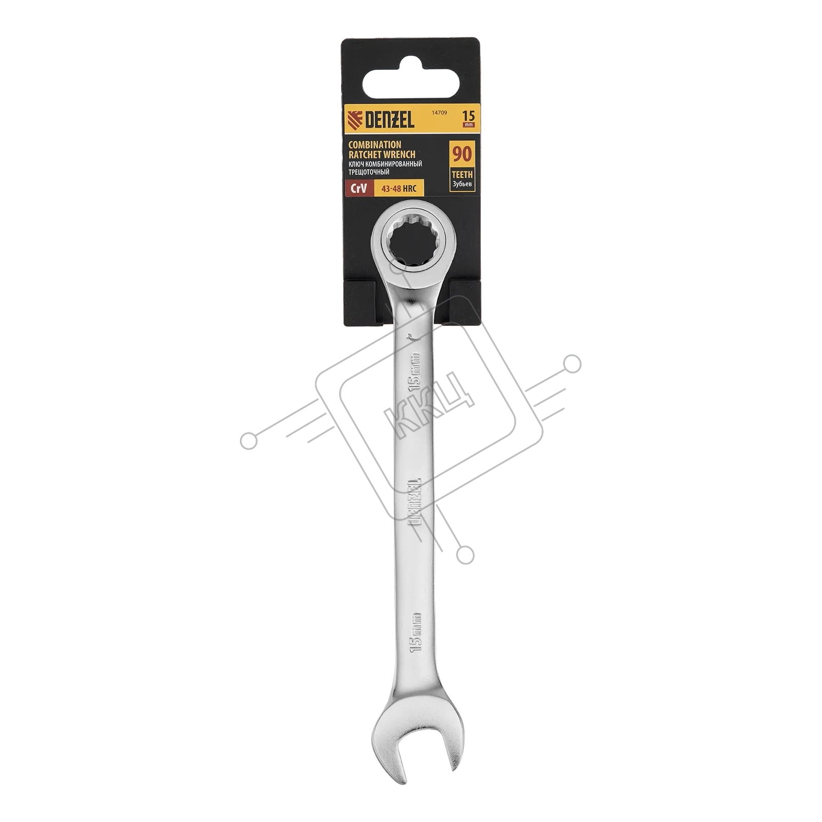 Ключ комбинированный трещоточный Denzel 14709 15 мм, CrV, матовый хром