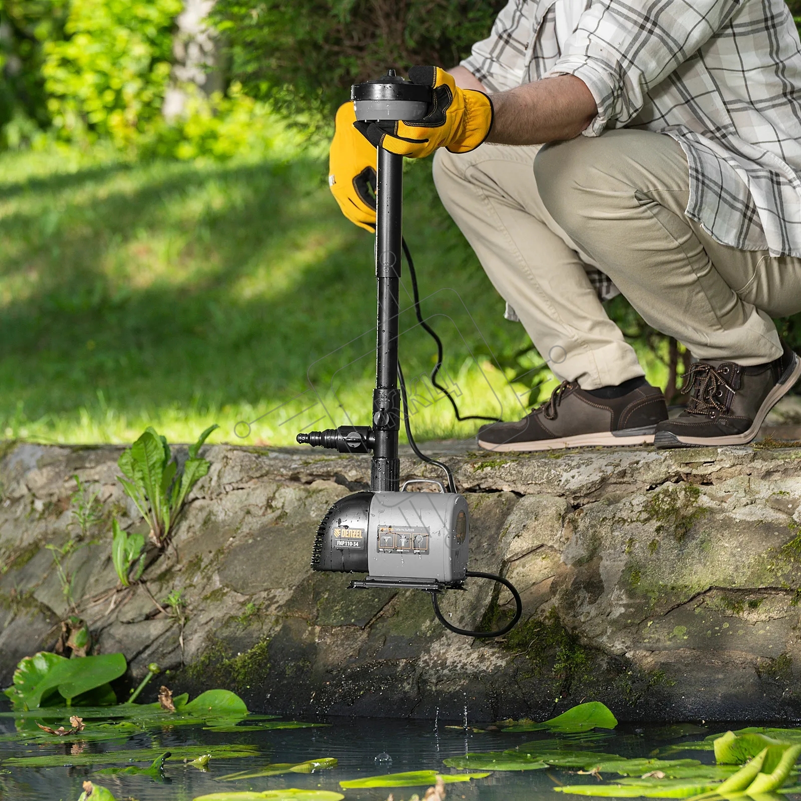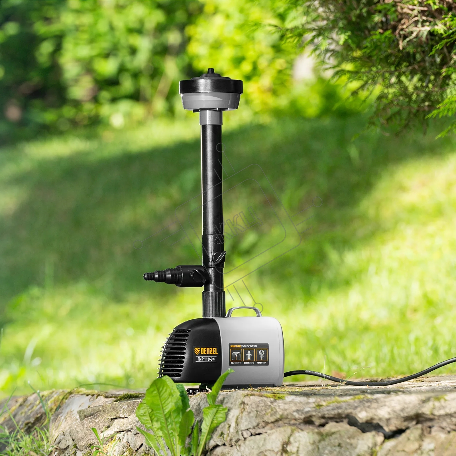 Насос фонтанный Denzel FNP110-34, 112 Вт, подъем 3,4 м, 3400 л/ч, колокольчик/каскад/гейзер
