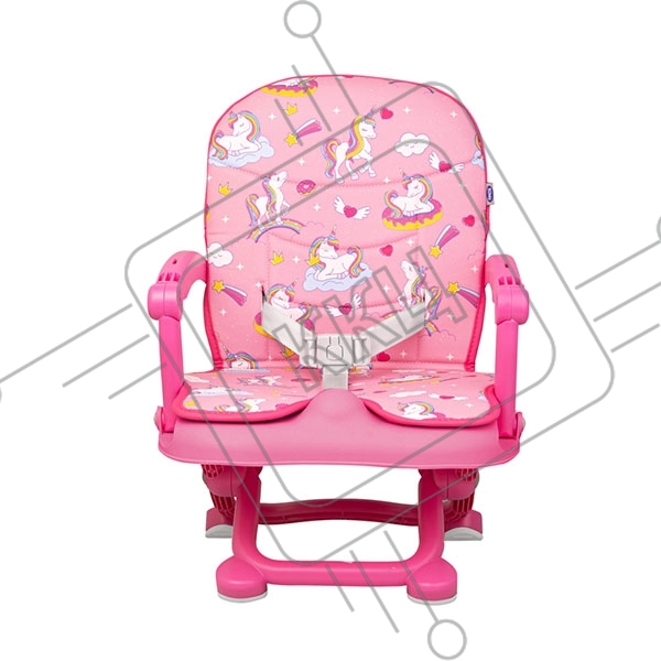 Стульчик для кормления BQ BCH012 Unicorns. Стульчик-бустер BQ BCH012. Гипоалергенные безопасные материалы/Съемный чехол из экокожи. Удобный, устойчив к загрязнению и легко моется/Съемная столешница/Безопасность малыша: устойчивая конструкция, нескользящие