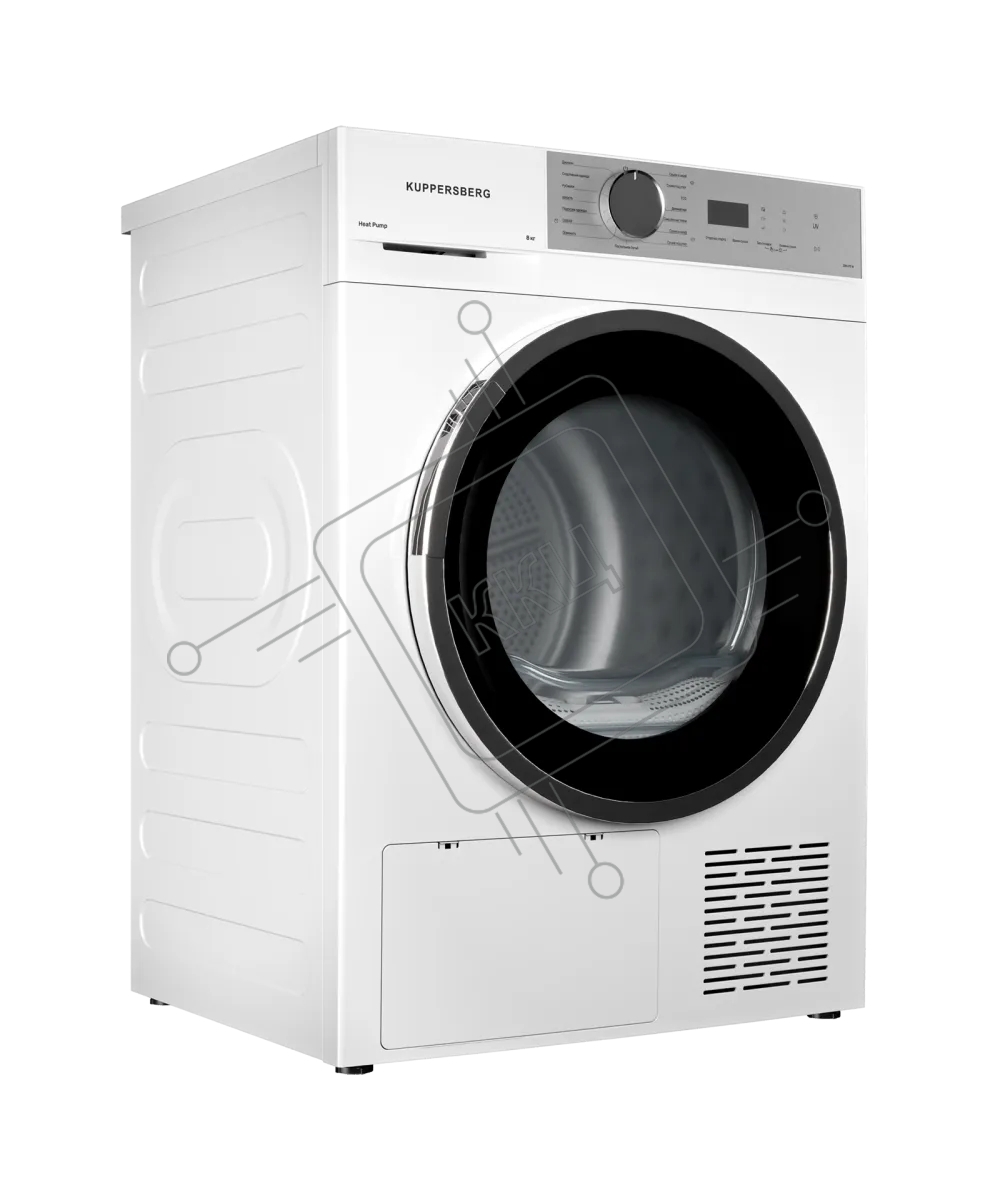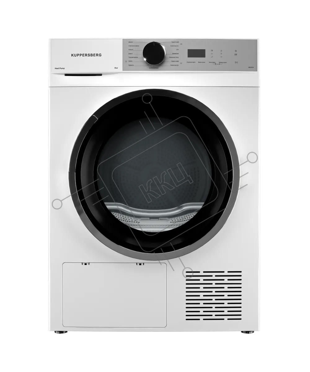 Сушильная машина Kuppersberg DM 611 W, отдельностоящая, тепловой насос, 8 кг, 15 программ, отсрочка старта, защита от сминания, ультрафиолет, электронное управление, белый