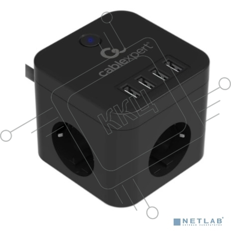Сетевой фильтр Cablexpert Cube CUBE-3-U4-B-1.5, 3р, 10А, 4хUSB, 1.5м, ур.защиты 4+, черный, коробка