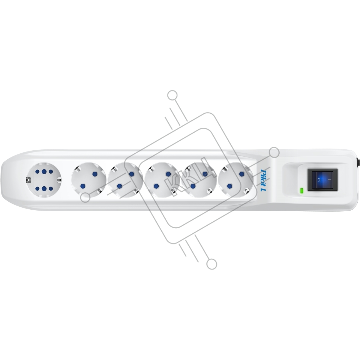 Сетевой фильтр Pilot L GP 6 розеток (5 евро + 1GP) 5 м/ Surge protector Pilot L GP 6 sockets (5 Euro + 1GP) 5 m белый